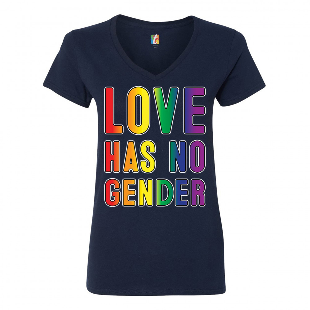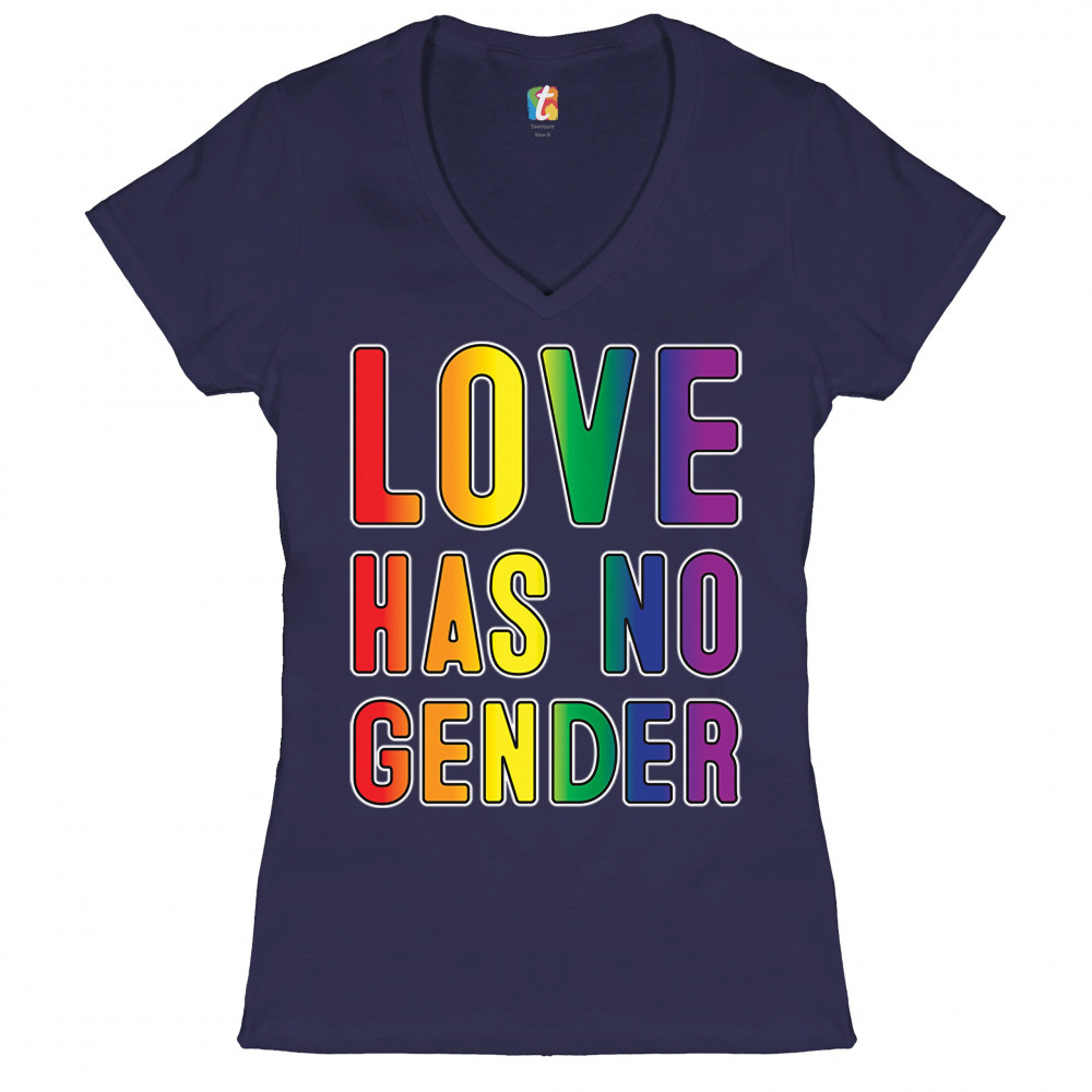 LOVE HAS NO GENDER women's v-neck t-shirt lesbian gay bi transgender ally tee navy blue
