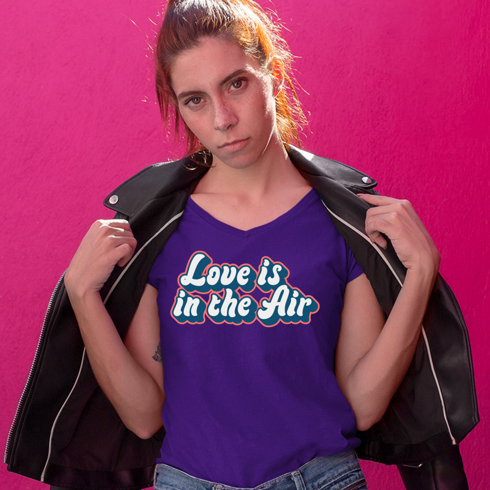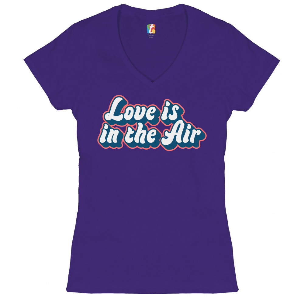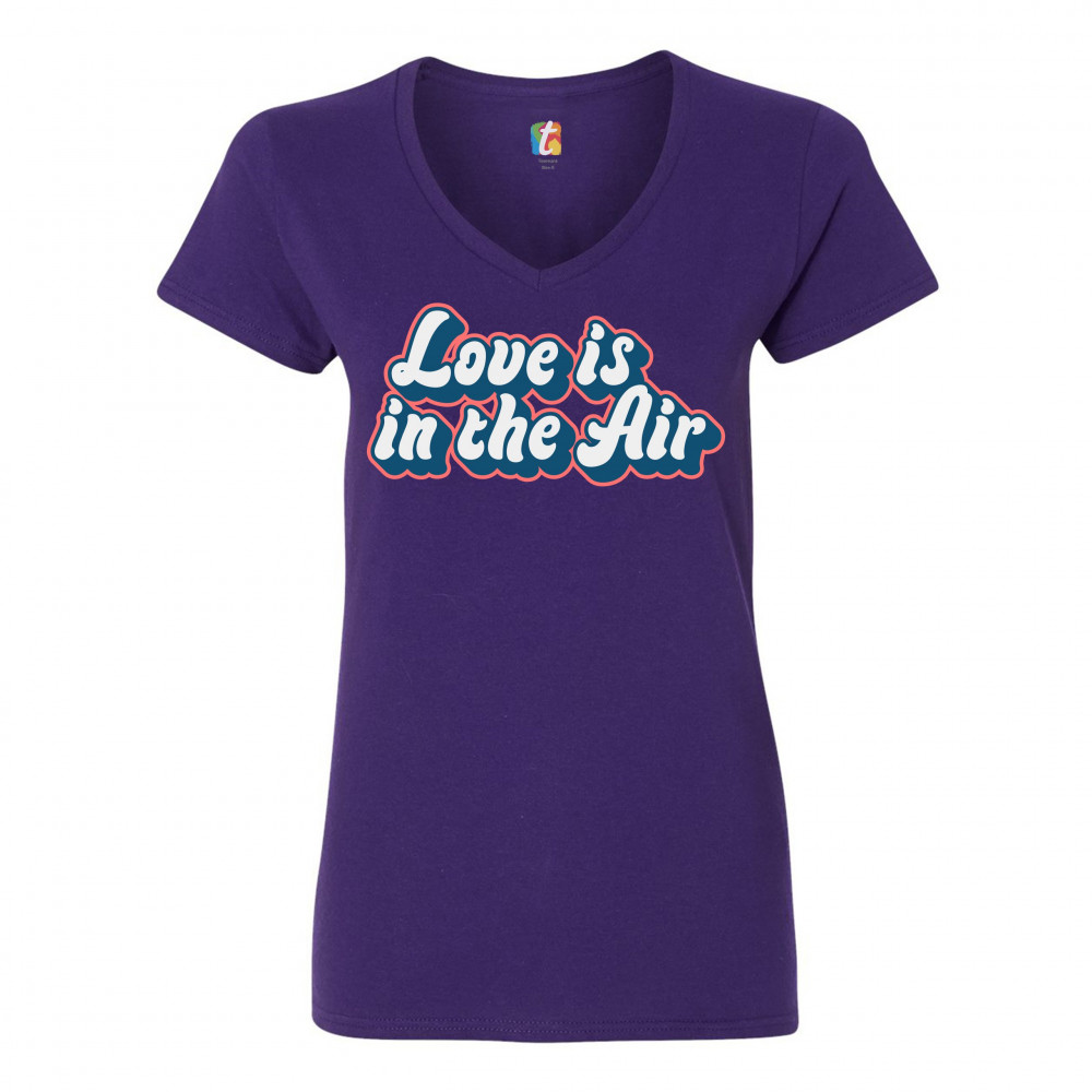 LOVE IS IN THE AIR women's v-neck t-shirt happy valentine's day romance tee purple