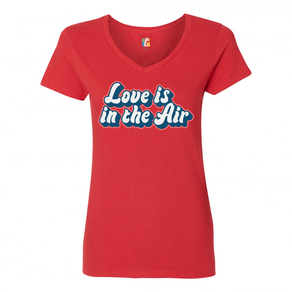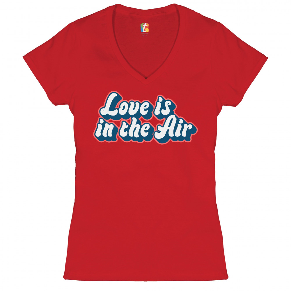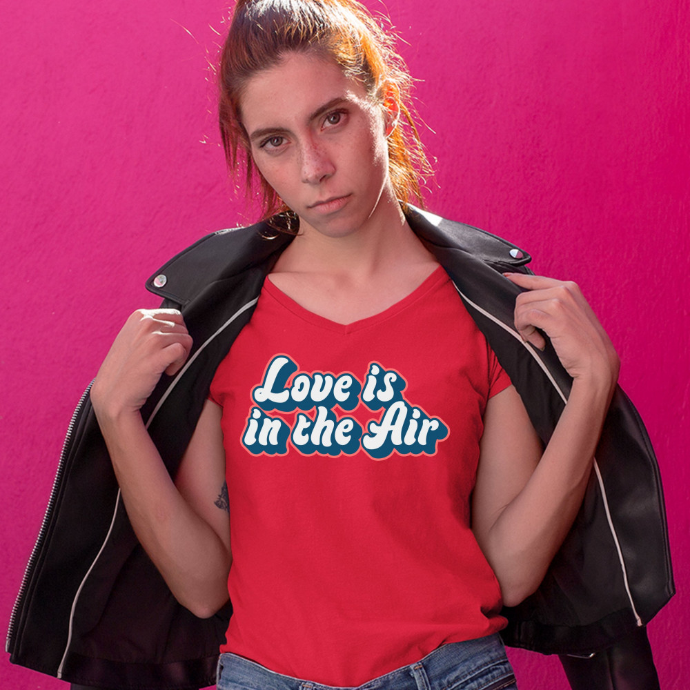 LOVE IS IN THE AIR women's v-neck t-shirt happy valentine's day romance tee red