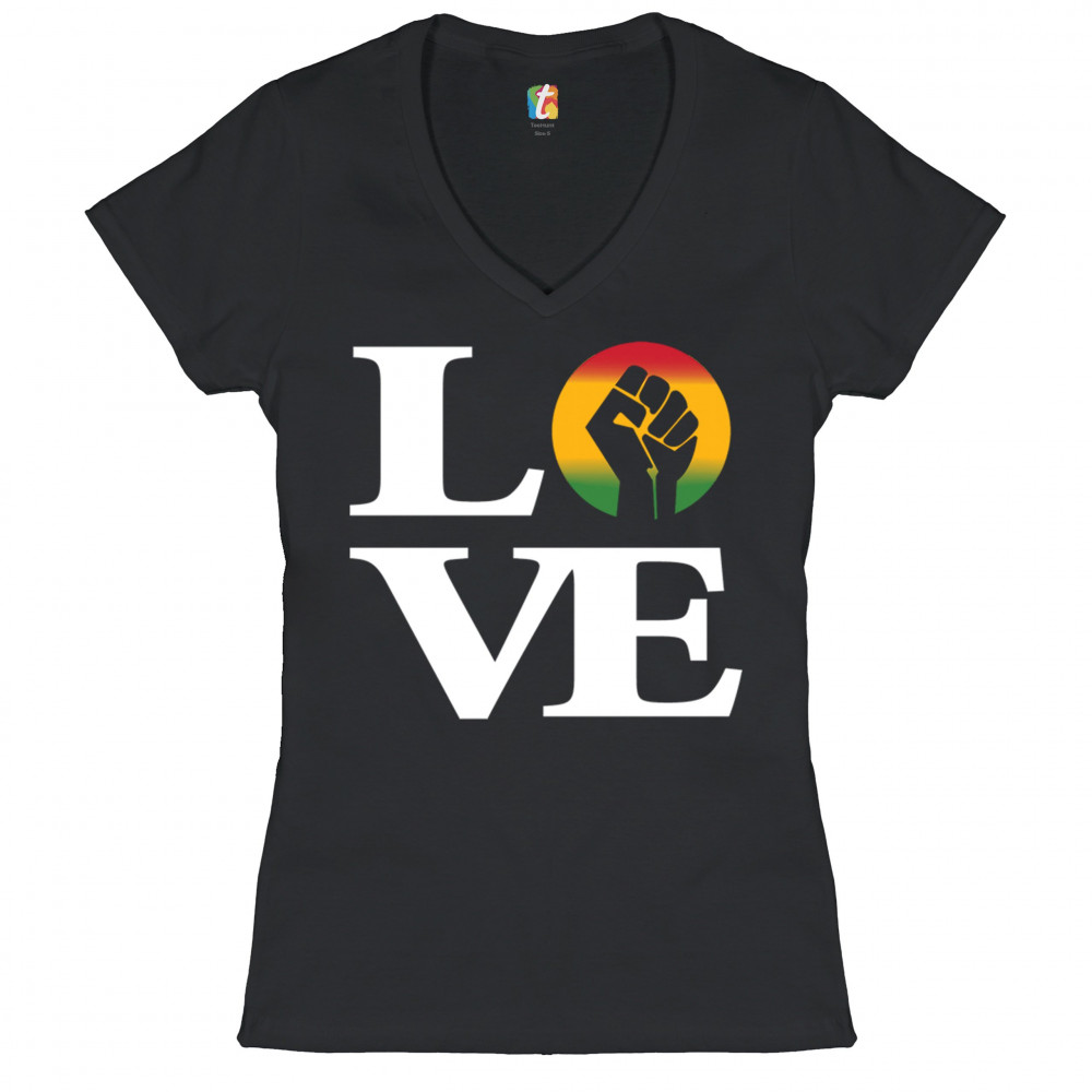 LOVE POWER FIST women's v-neck t-shirt black lives matter african american tee black