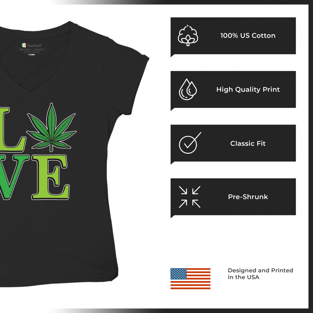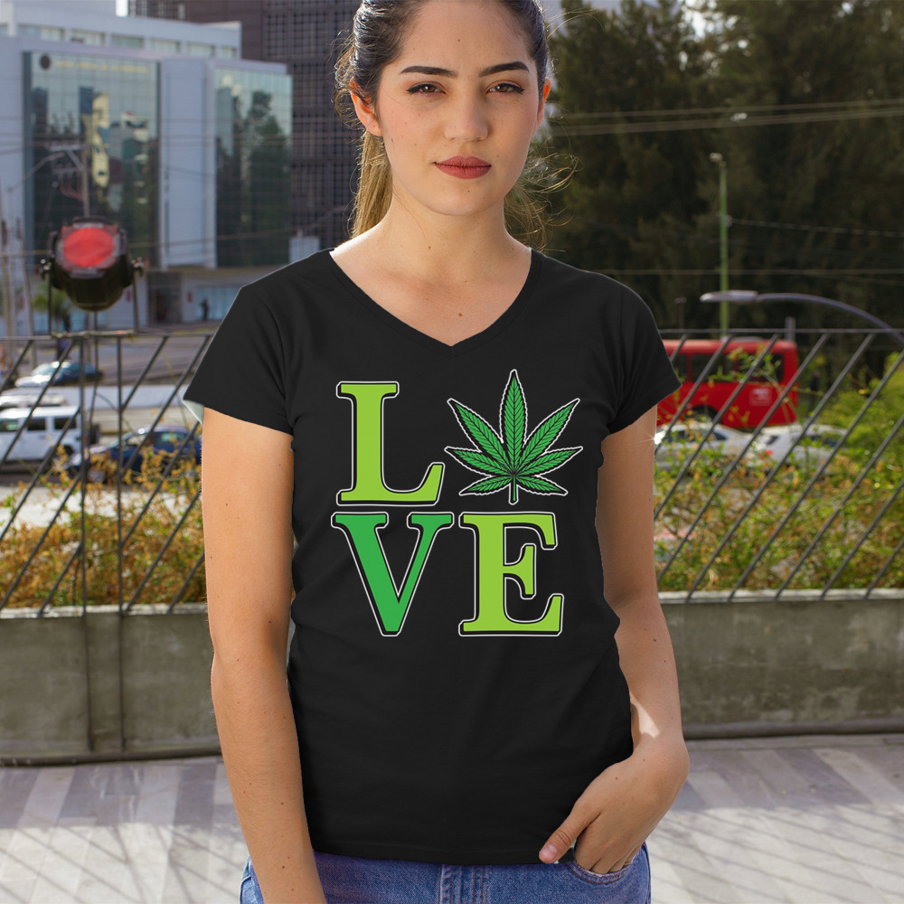 LOVE design with a bold weed leaf. Perfect for 420 fans, stoners, cannabis lifestyle wear, green pride, and marijuana lovers.