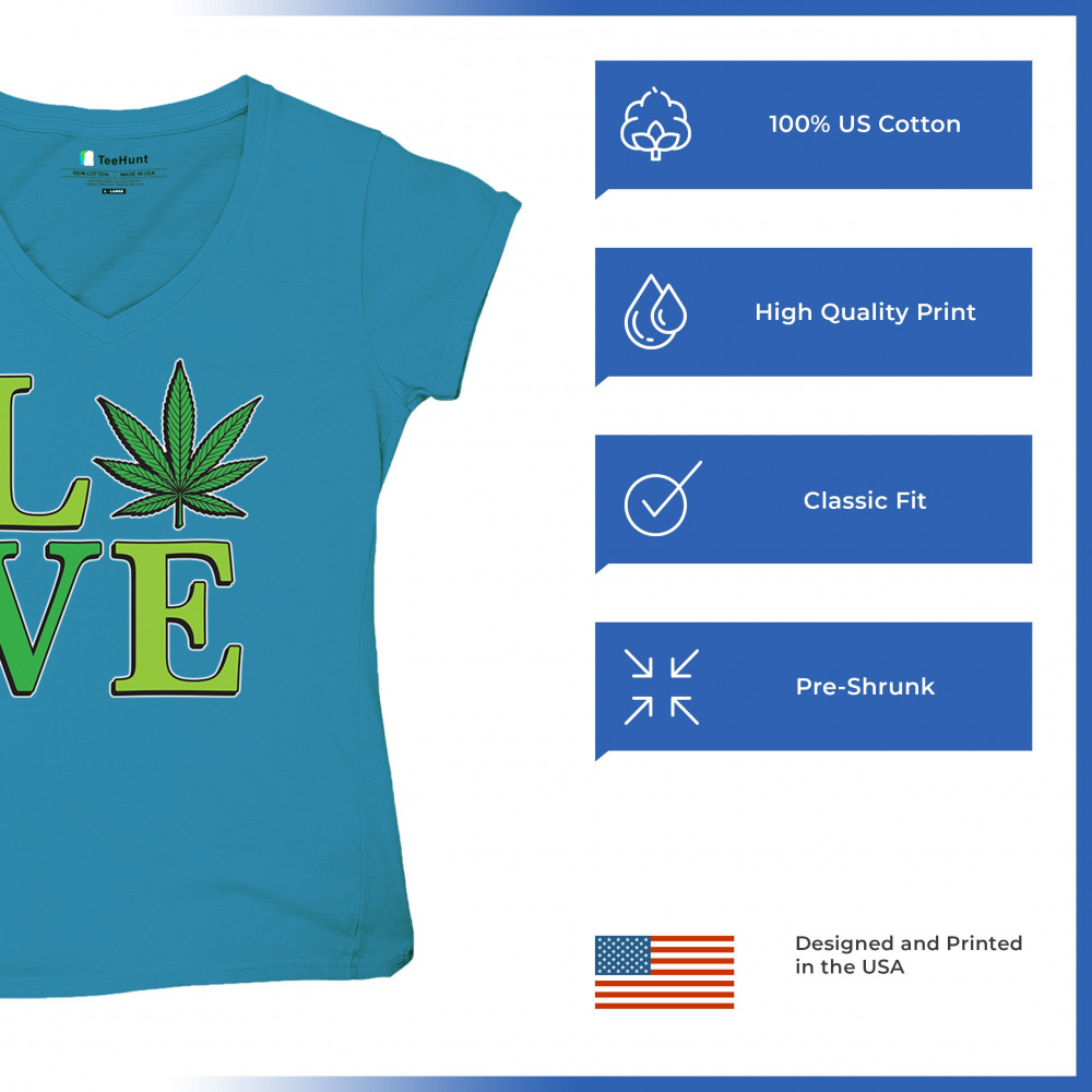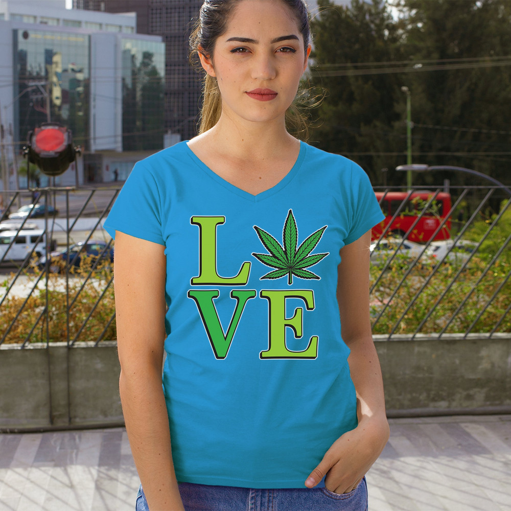 LOVE design with a bold weed leaf. Perfect for 420 fans, stoners, cannabis lifestyle wear, green pride, and marijuana lovers.