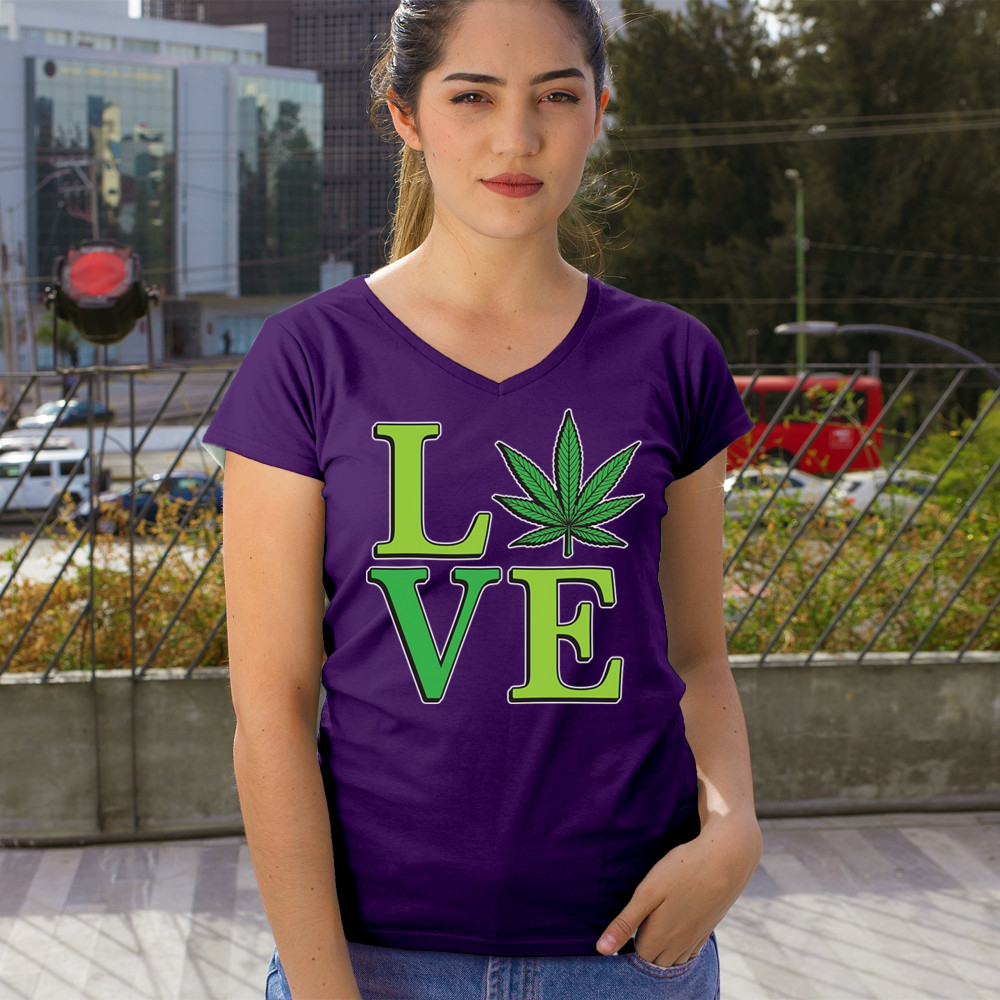 LOVE design with a bold weed leaf. Perfect for 420 fans, stoners, cannabis lifestyle wear, green pride, and marijuana lovers.