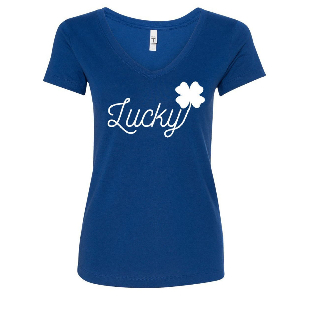 LUCKY SHAMROCK lucky irish women's v-neck t-shirt st. patrick's day shamrock pub beer drinking royal blue