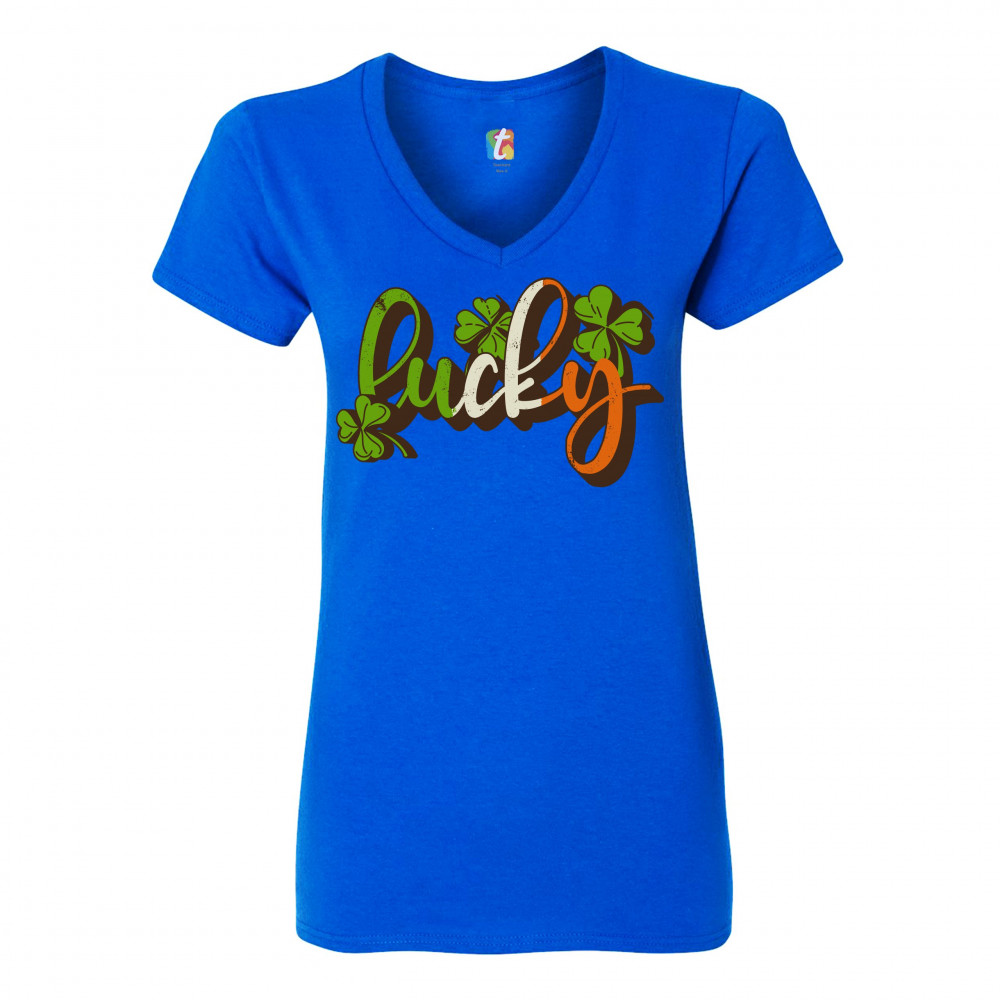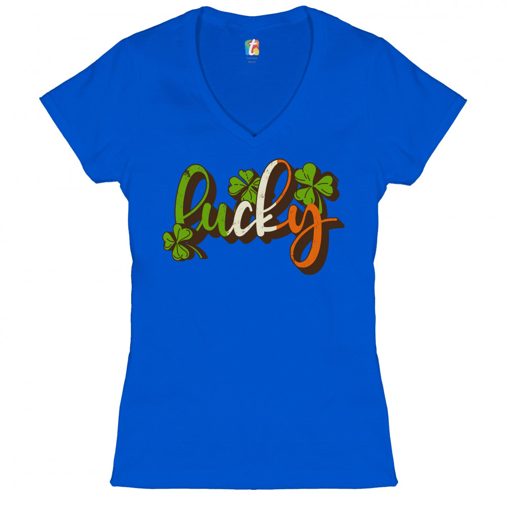 LUCKY women's v-neck t-shirt irish st. patrick's day leprechaun elves tee royal blue