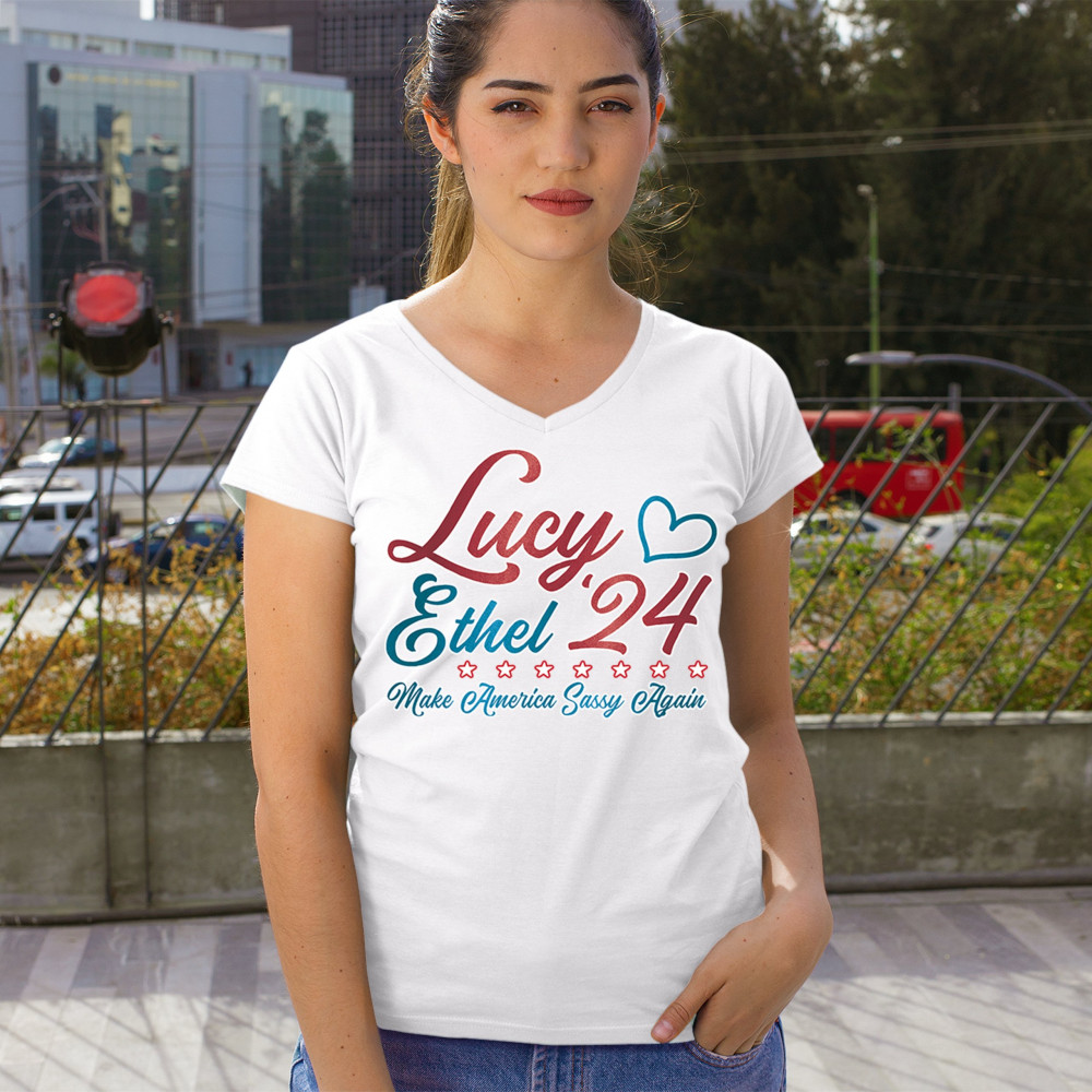 Step back into the golden age of television with this unique election-themed design. Perfect for fans of classic American TV, this design blends nostalgia with modern-day election humor. Whether you're wearing it to make a statement or just for fun, this design is sure to turn heads and spark conversations. Ideal for casual wear, themed parties, or as a thoughtful gift for TV buffs. Celebrate the past while looking ahead with this delightful and sassy design.