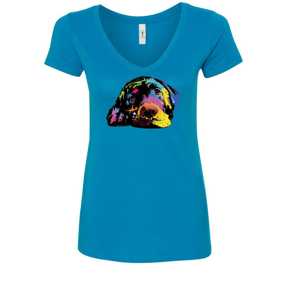 LYING LABRADOR RETRIEVER women's v-neck t-shirt dean russo neon lab pet lovers turquoise