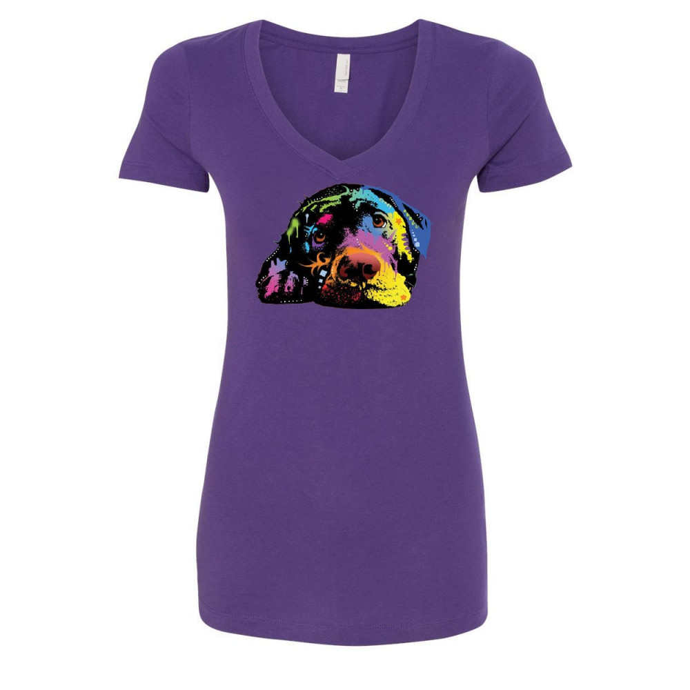 LYING LABRADOR RETRIEVER women's v-neck t-shirt dean russo neon lab pet lovers purple