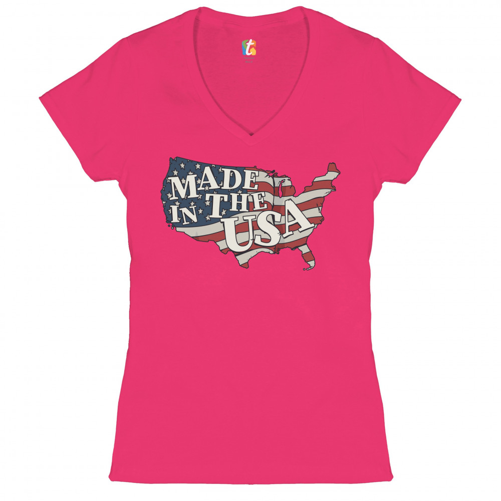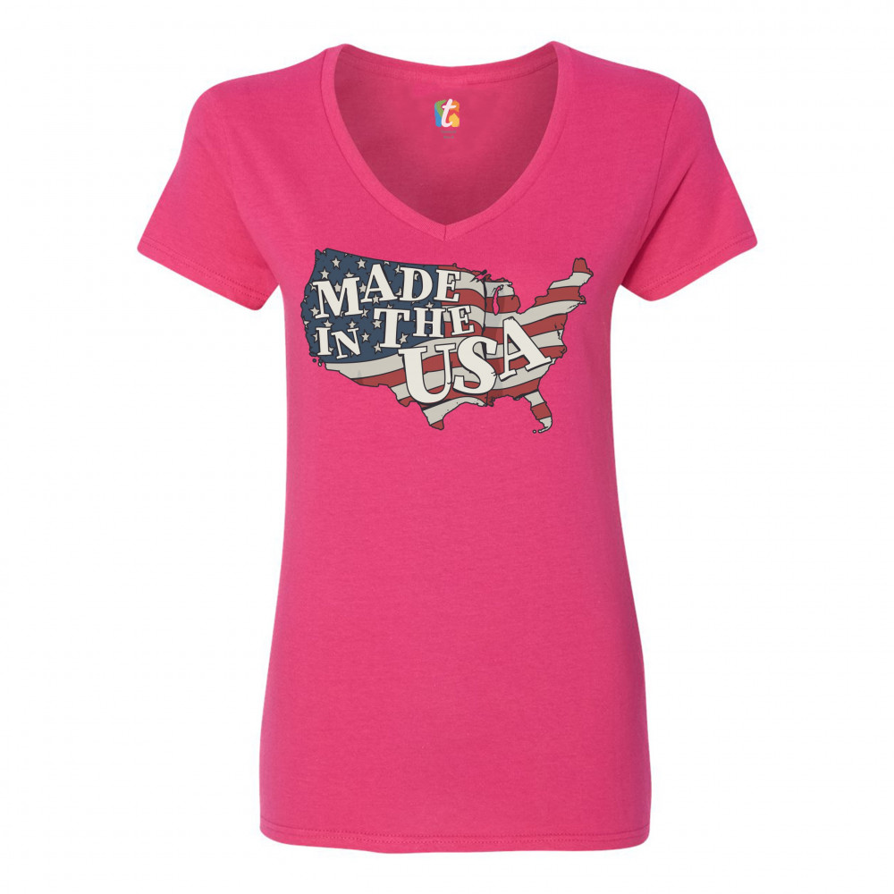 MADE IN THE USA women's v-neck t-shirt american flag independence day tee pink