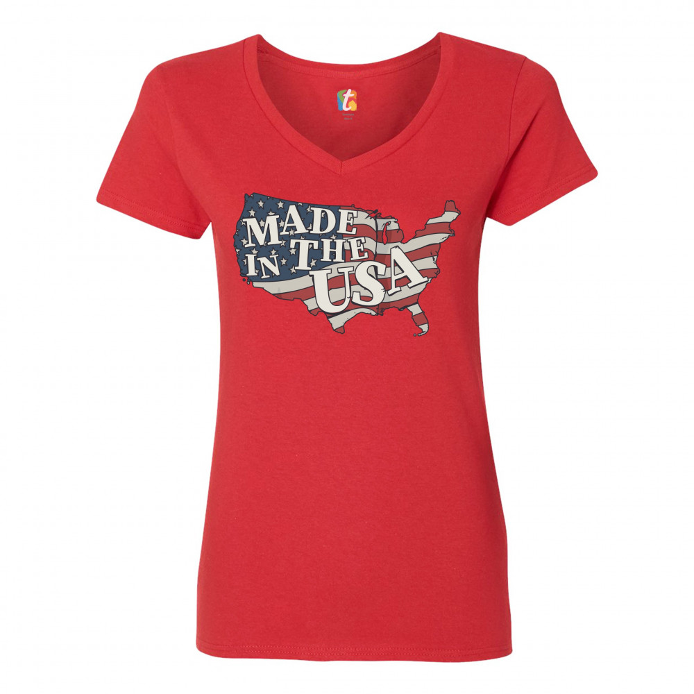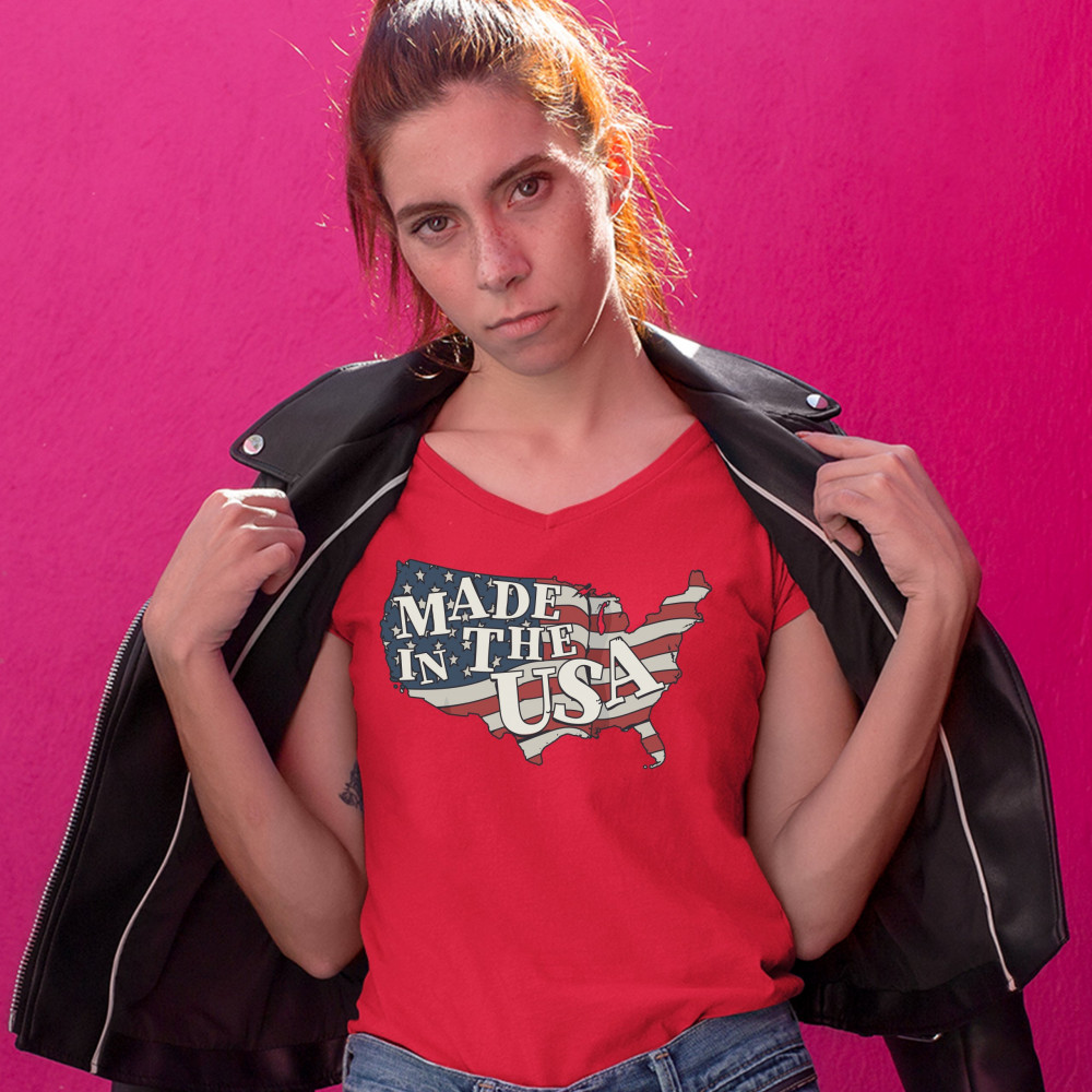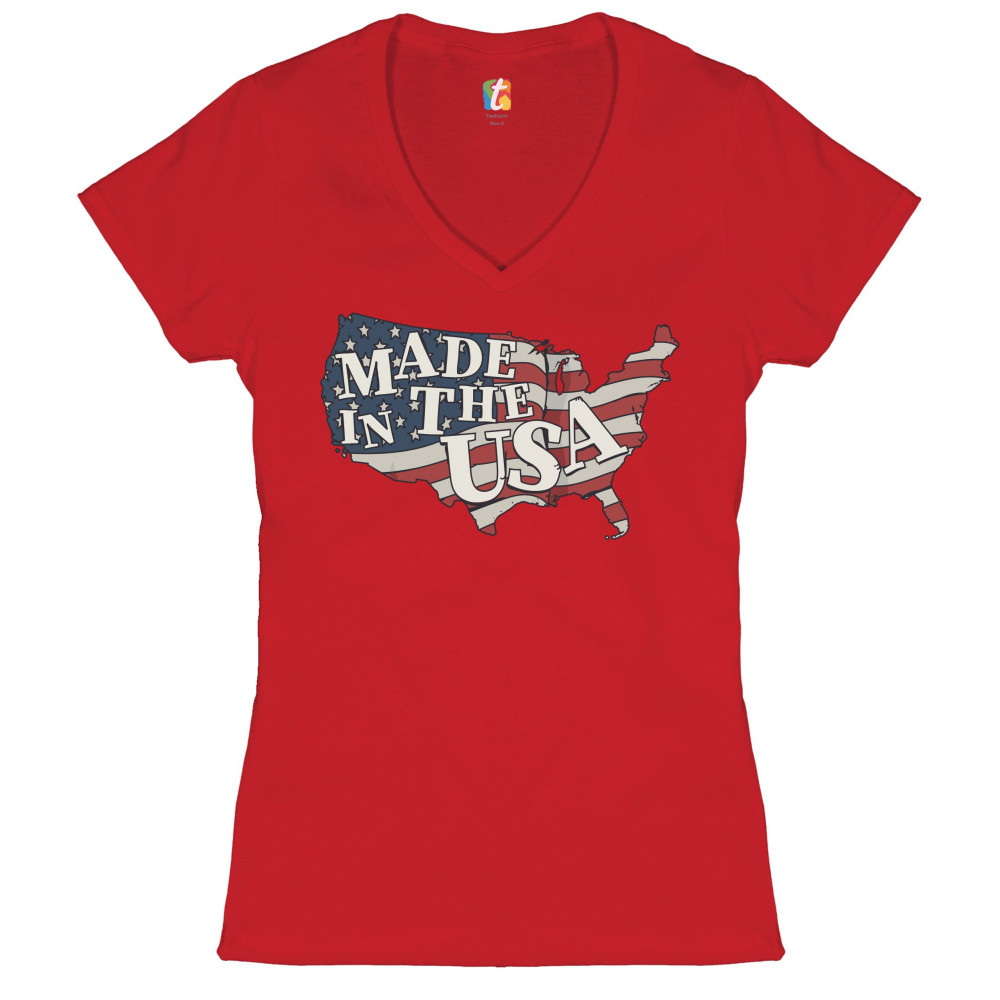 MADE IN THE USA women's v-neck t-shirt american flag independence day tee red