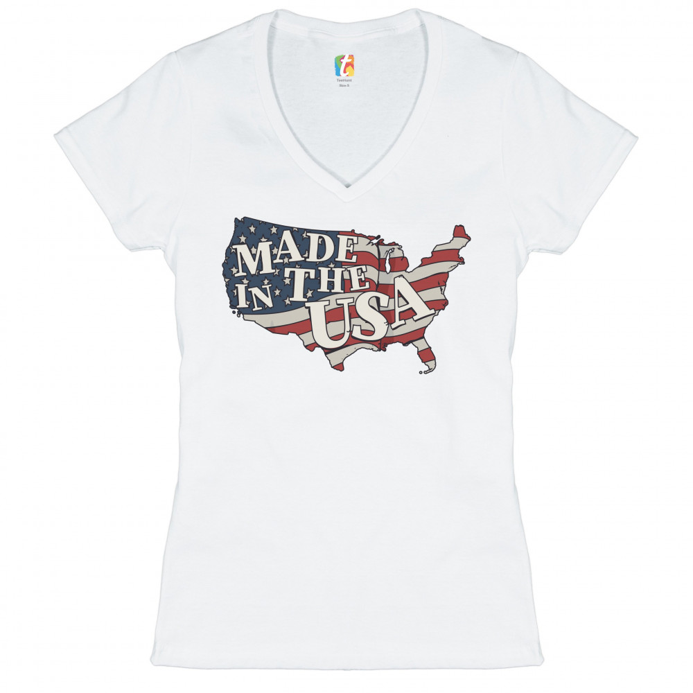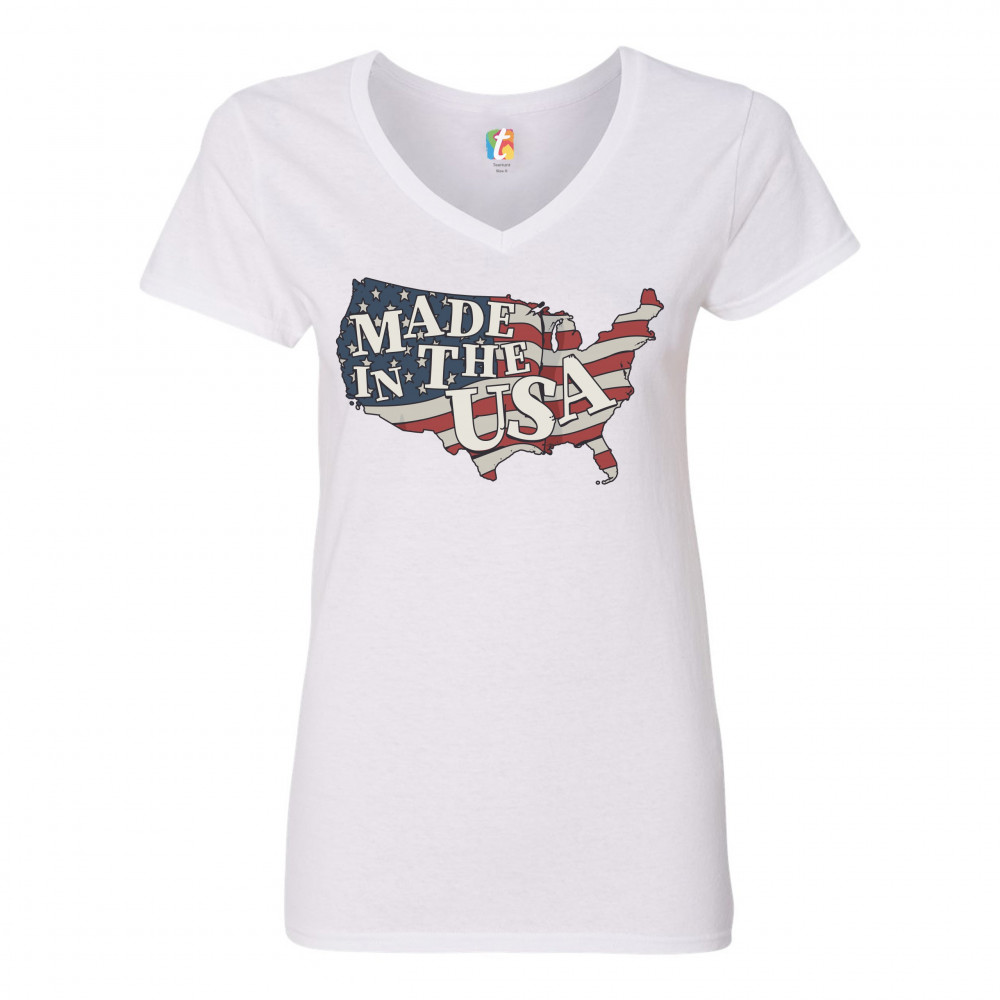 MADE IN THE USA women's v-neck t-shirt american flag independence day tee white