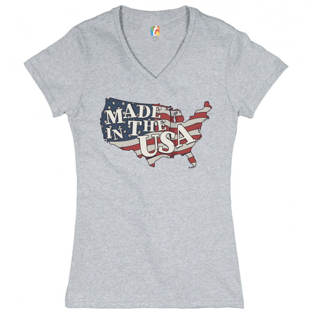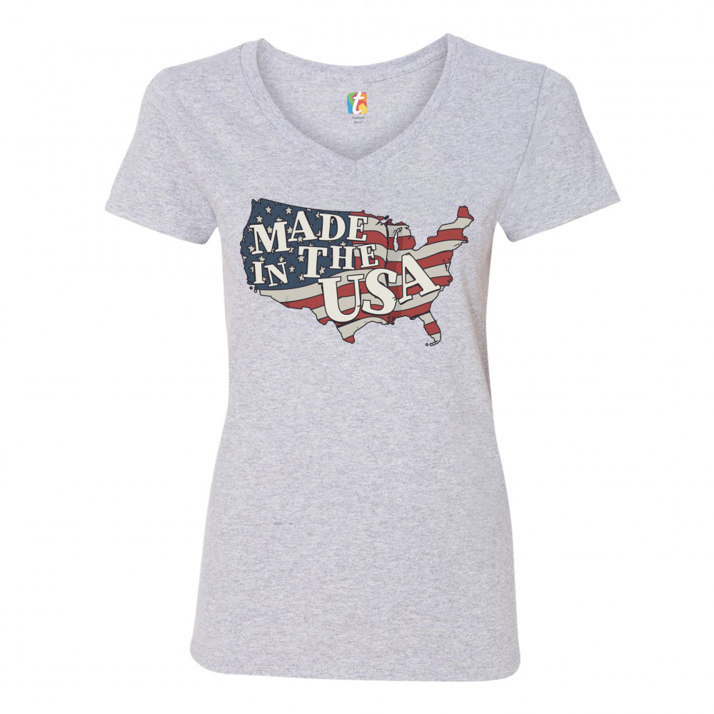 MADE IN THE USA women's v-neck t-shirt american flag independence day tee gray