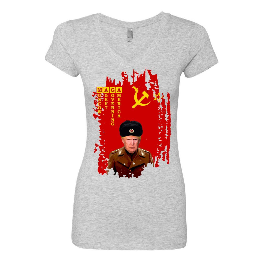 MAGA COMRADE TRUMP women's v-neck t-shirt funny soviet flag ussr russian agent gray