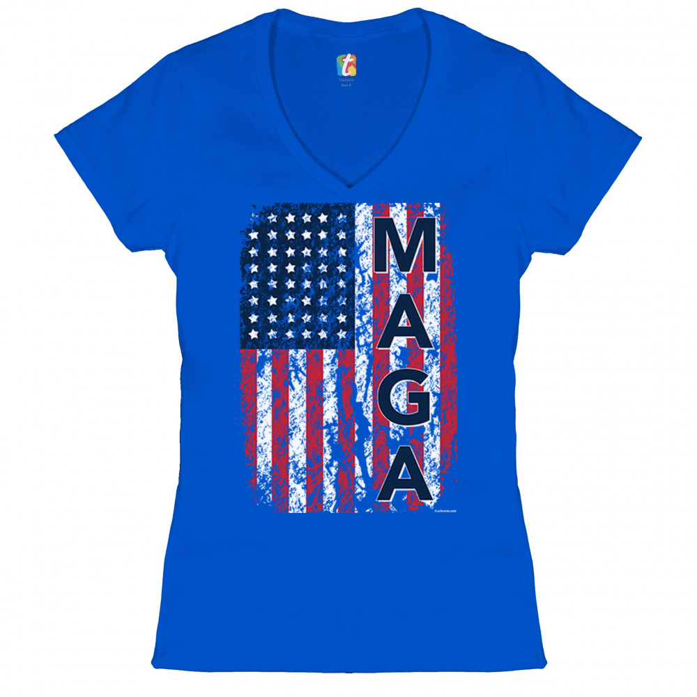 MAGA FLAG women's v-neck t-shirt donald trump 2020 flag keep america great tee royal blue