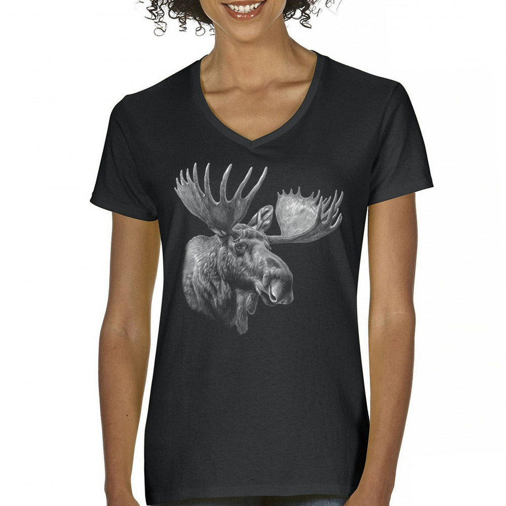 Bold monochrome moose head sketch for outdoorsmen, hunters, and wildlife fans. Great for fall hikes, cabin wear, or wilderness events.