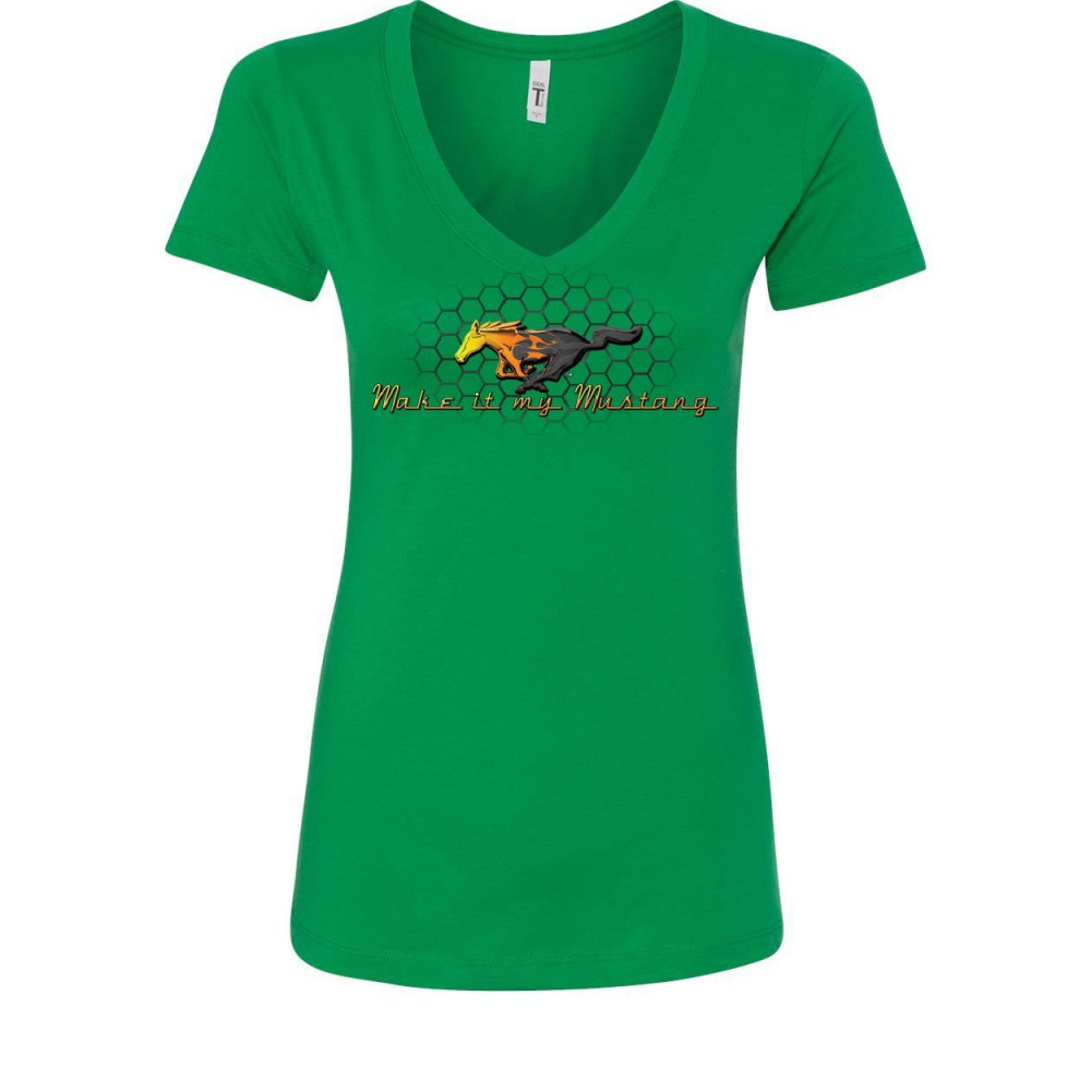 MAKE IT MY MUSTANG women's v-neck t-shirt honeycomb american classic fire horse green