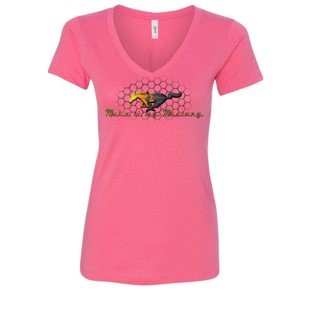 MAKE IT MY MUSTANG women's v-neck t-shirt honeycomb american classic fire horse pink