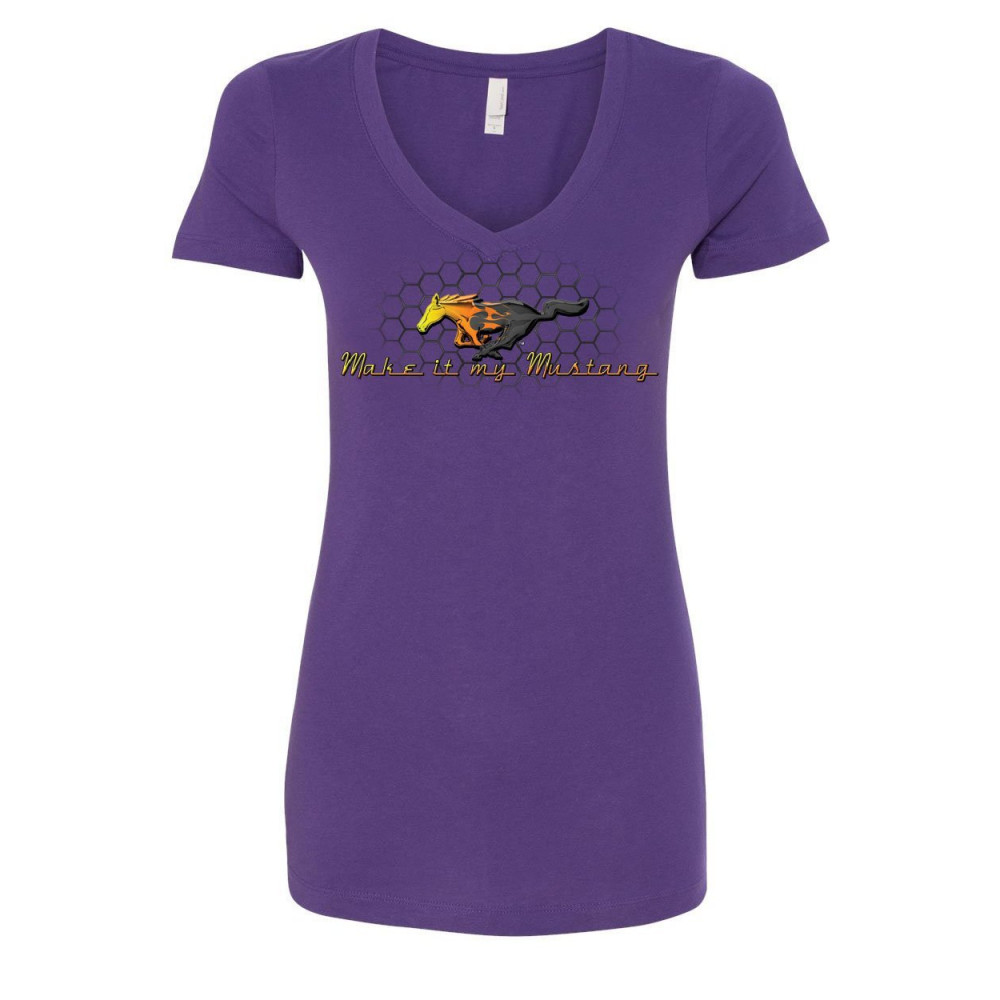 MAKE IT MY MUSTANG women's v-neck t-shirt honeycomb american classic fire horse purple