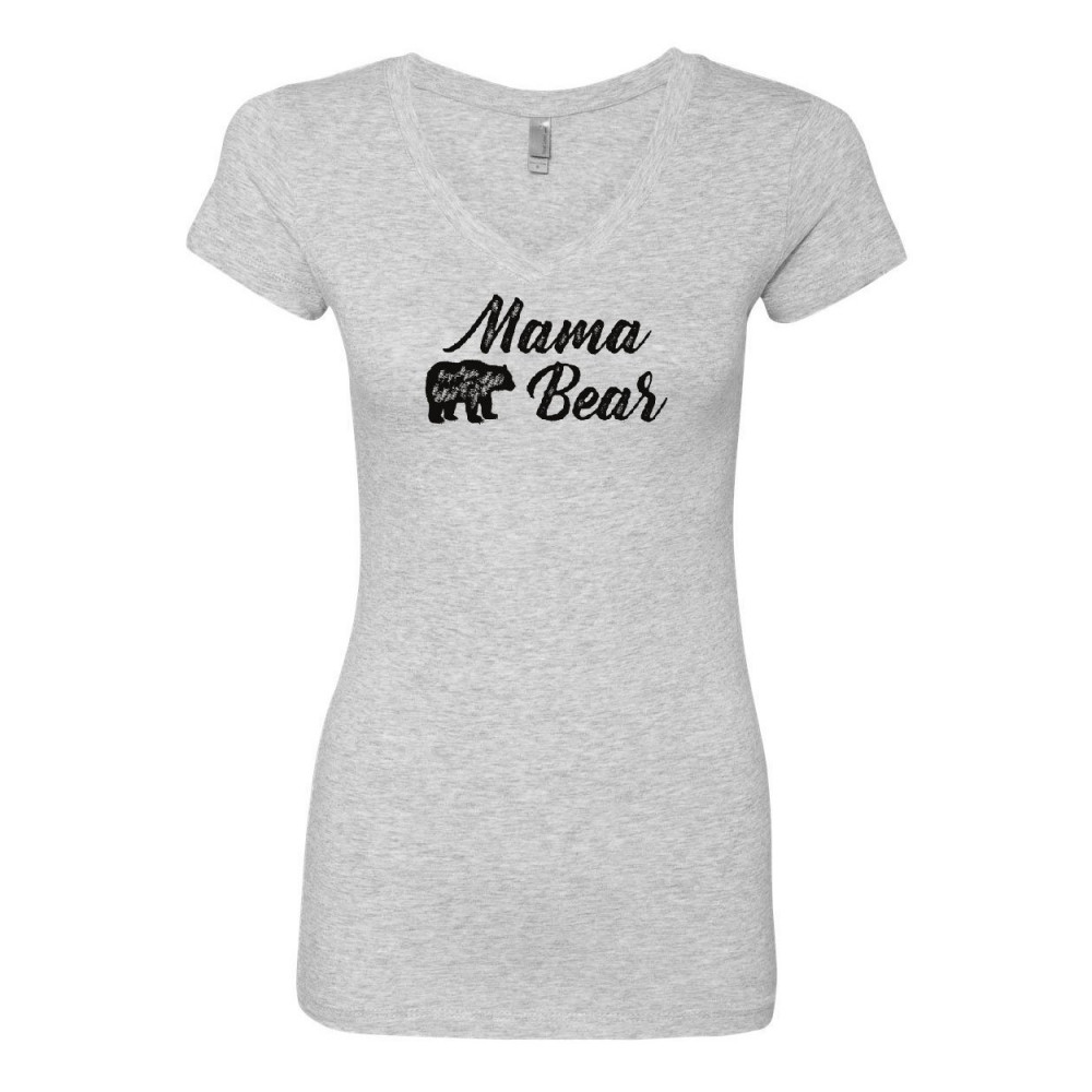 MAMA BEAR women's v-neck t-shirt mom mother's day family cute camping tourism gray