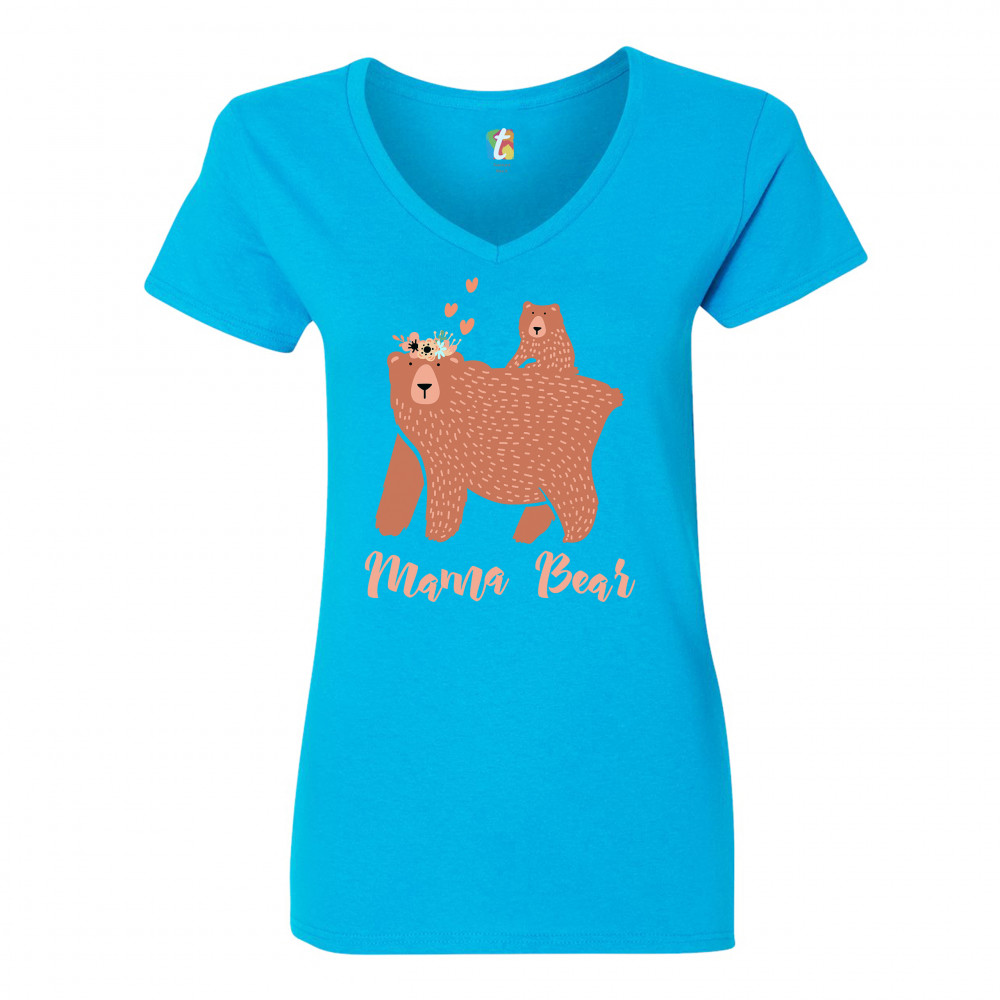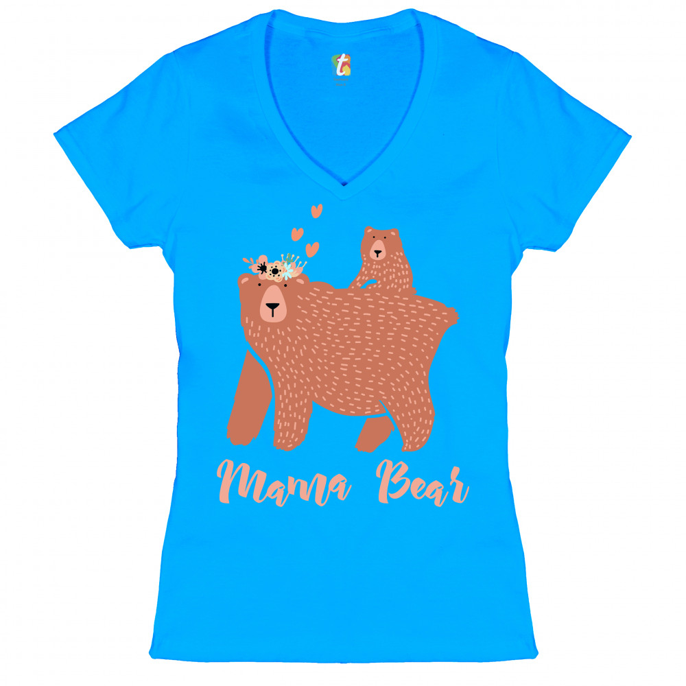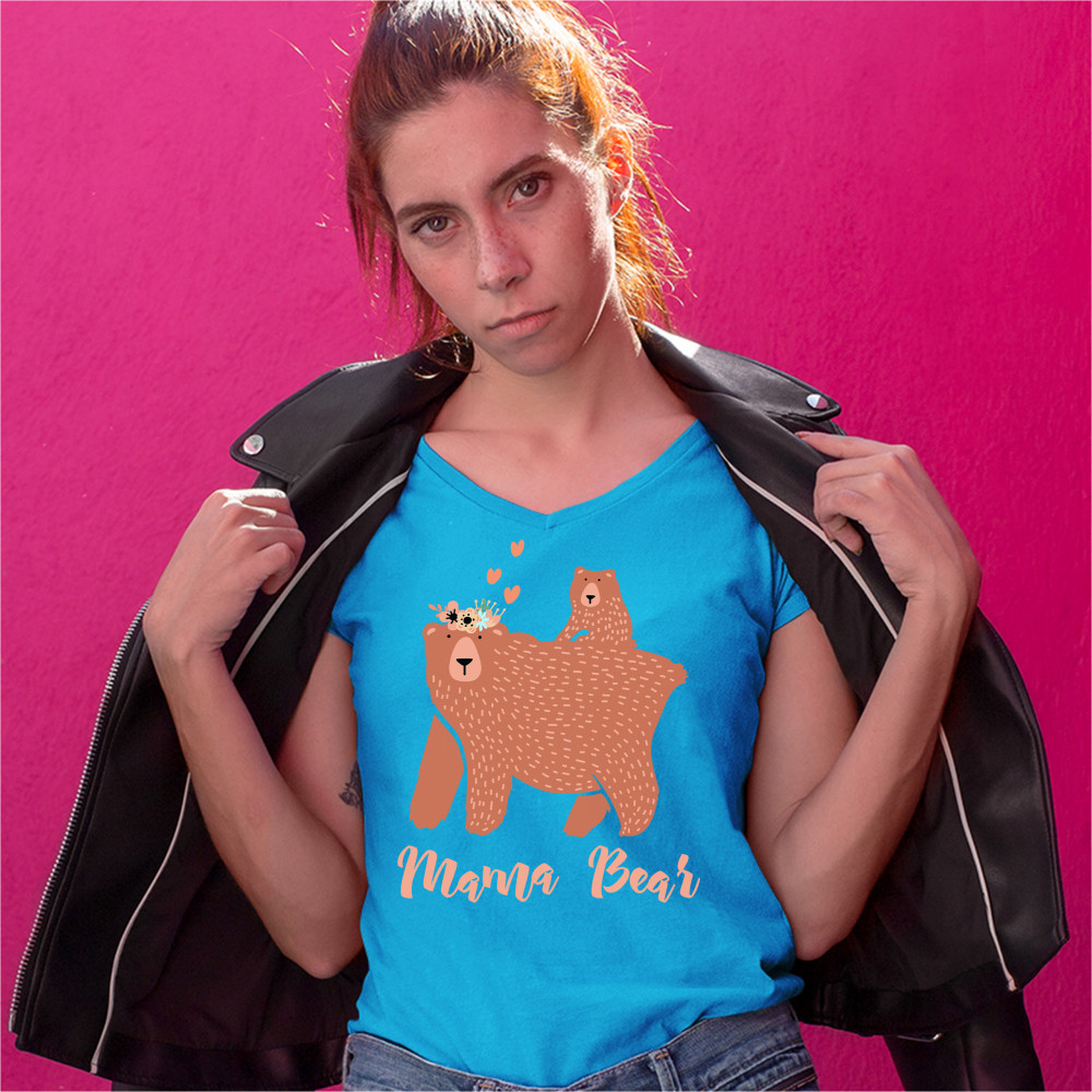 A beautiful print featuring a sweet momma bear caring a cub on her back. She is wearing a crown of flowers on her head with several hearts floating above it. Underneath her it says: "Mama Bear". A great choice as a gift on Mother's Day for a loving caring mom.