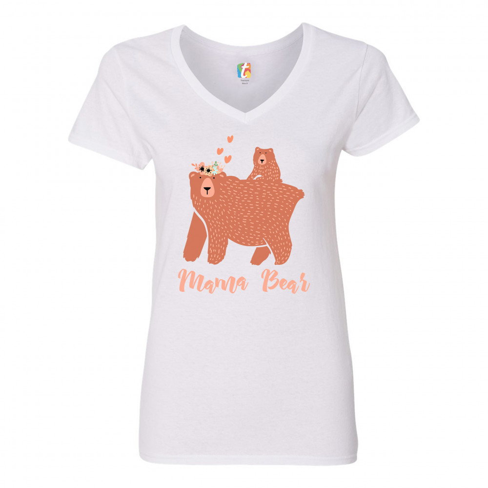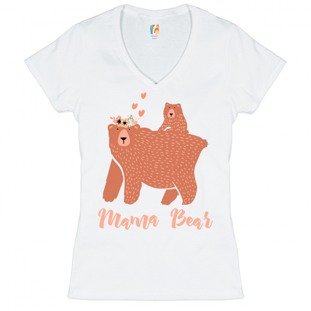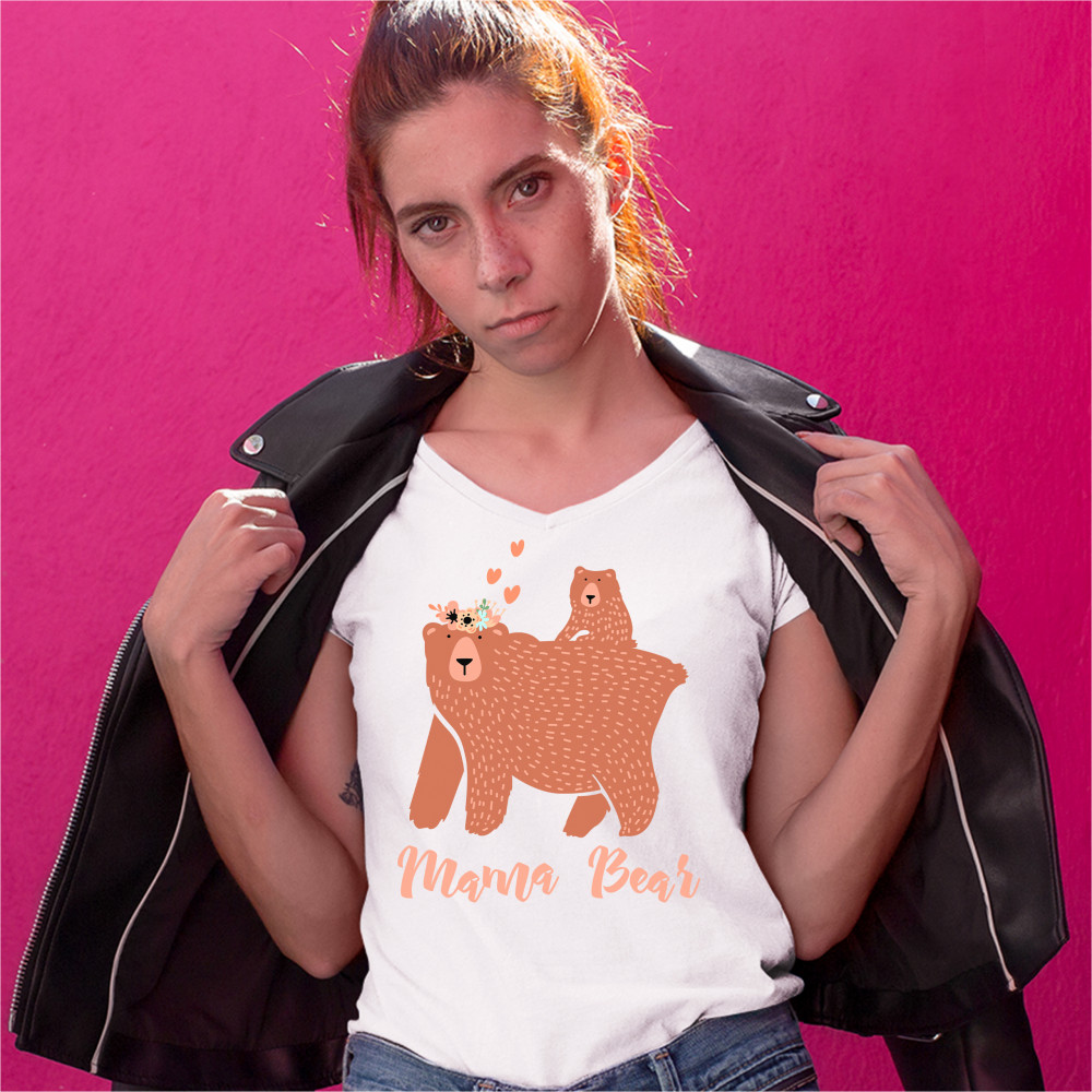A beautiful print featuring a sweet momma bear caring a cub on her back. She is wearing a crown of flowers on her head with several hearts floating above it. Underneath her it says: "Mama Bear". A great choice as a gift on Mother's Day for a loving caring mom.