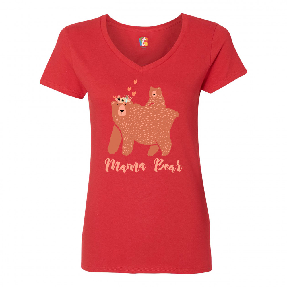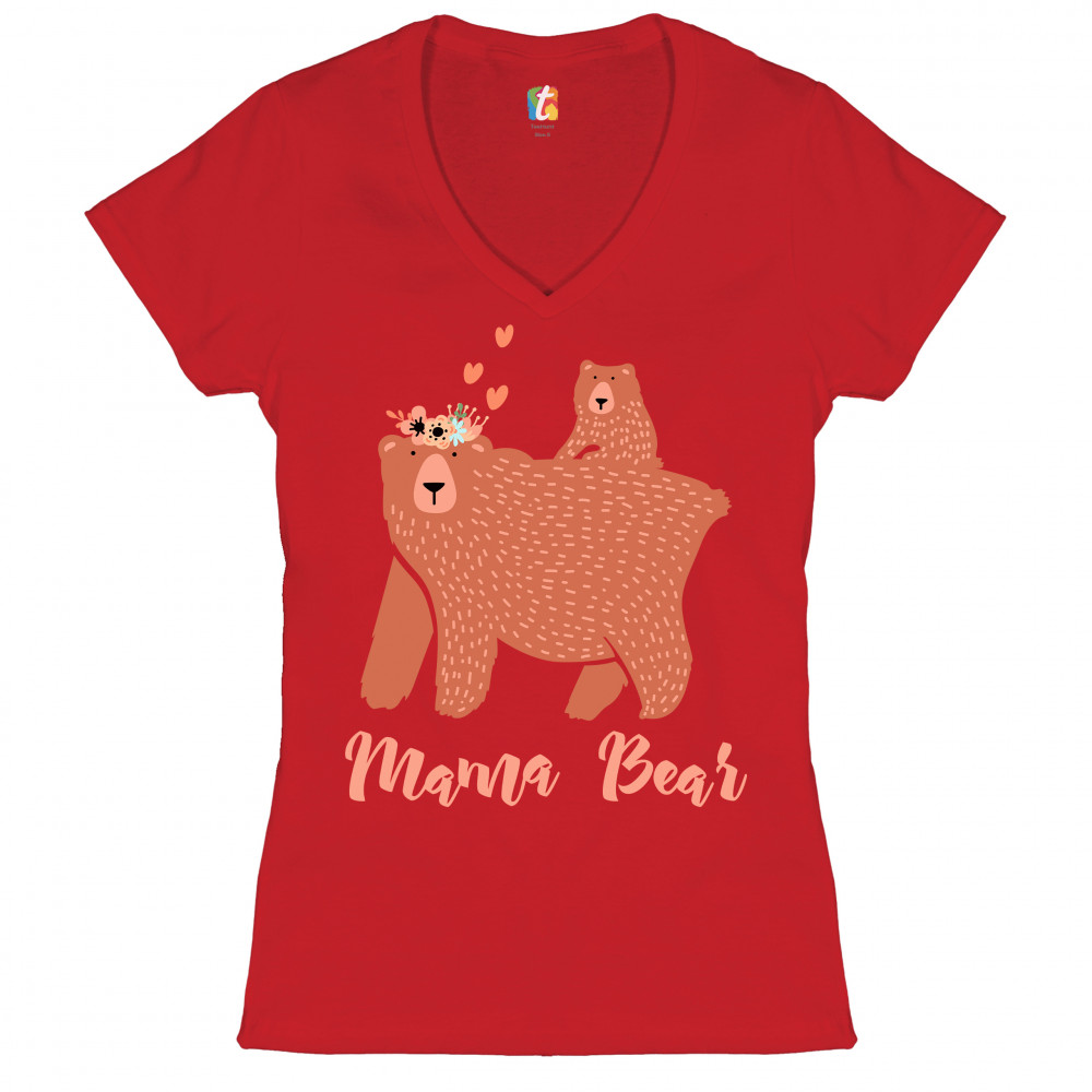 A beautiful print featuring a sweet momma bear caring a cub on her back. She is wearing a crown of flowers on her head with several hearts floating above it. Underneath her it says: "Mama Bear". A great choice as a gift on Mother's Day for a loving caring mom.
