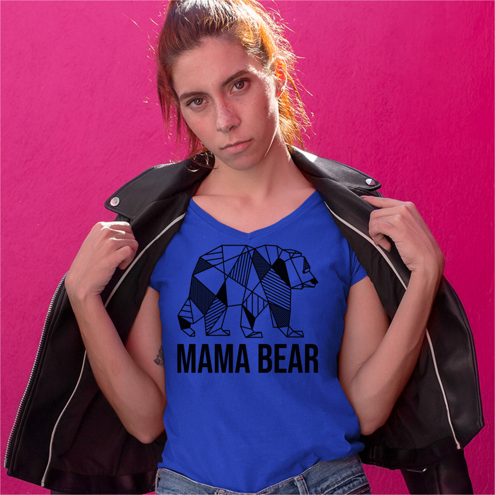 MAMA BEAR women's v-neck t-shirt funny mom life mother's day motherhood tee royal blue