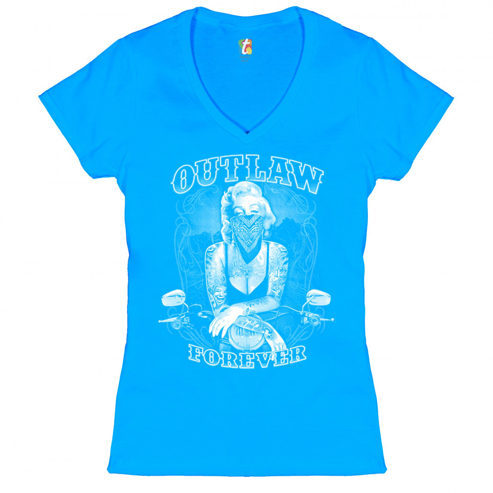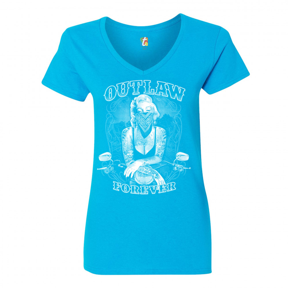 MARILYN MONROE OUTLAW FOREVER women's v-neck t-shirt biker live to ride tee turquoise