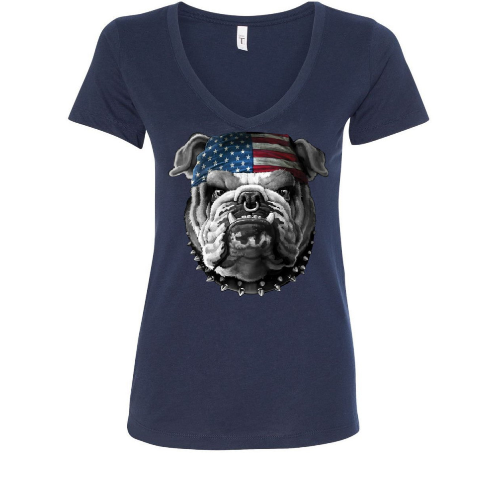 MEAN AMERICAN BULLDOG women's v-neck t-shirt stars and stripes bandana badass navy blue