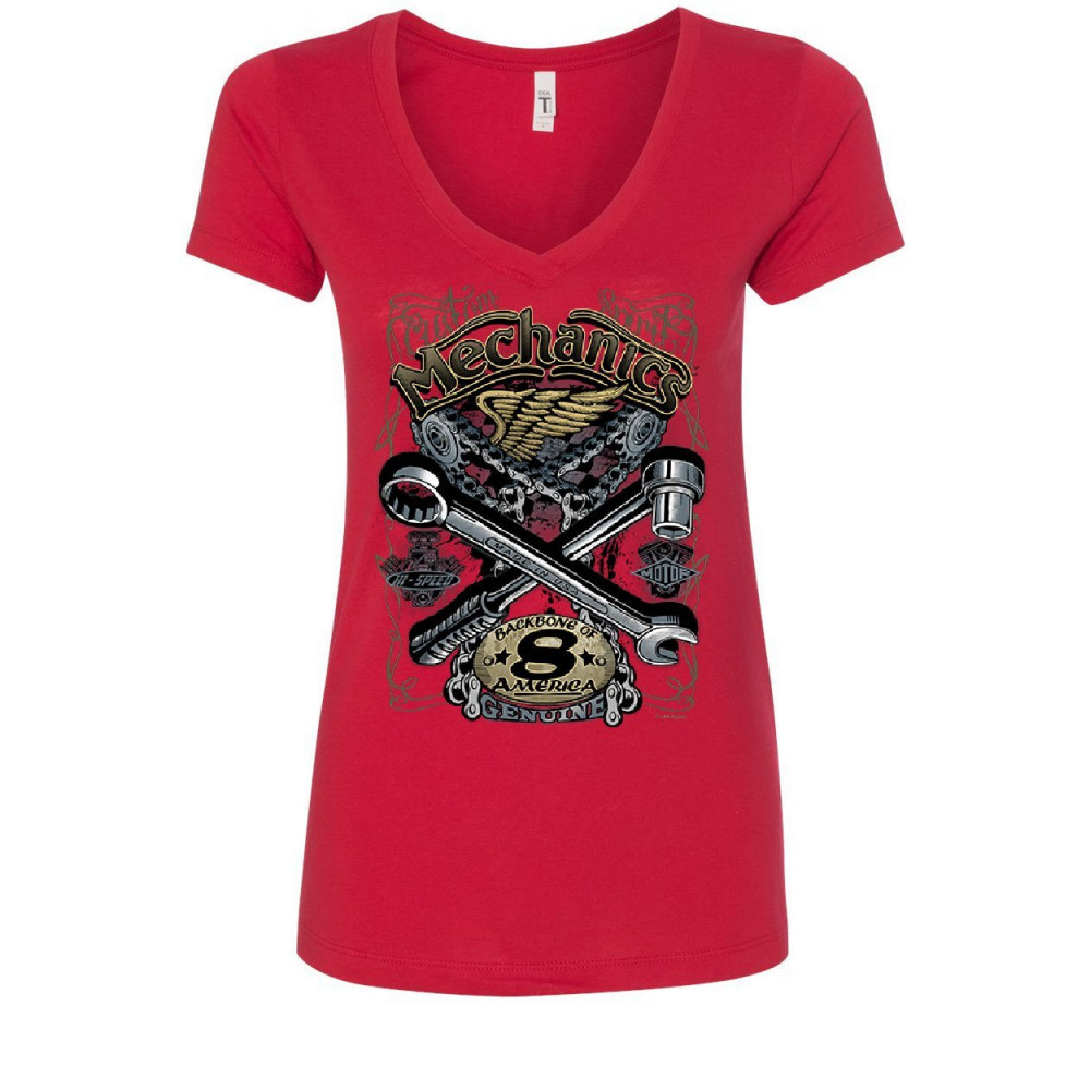 MECHANICS - BACKBONE OF AMERICA mechanics backbone of america women's v-neck t-shirt engine repair blue collar red