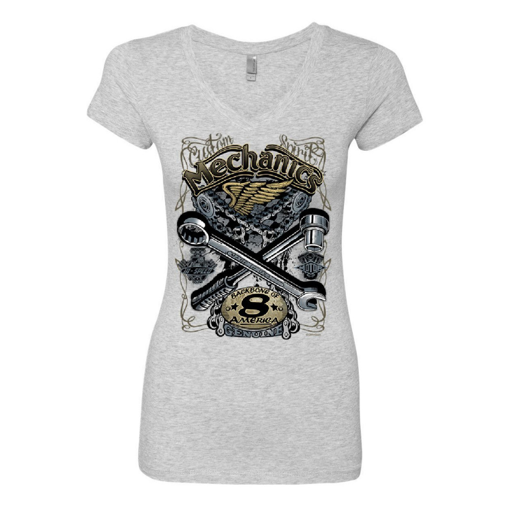 MECHANICS - BACKBONE OF AMERICA mechanics backbone of america women's v-neck t-shirt engine repair blue collar gray