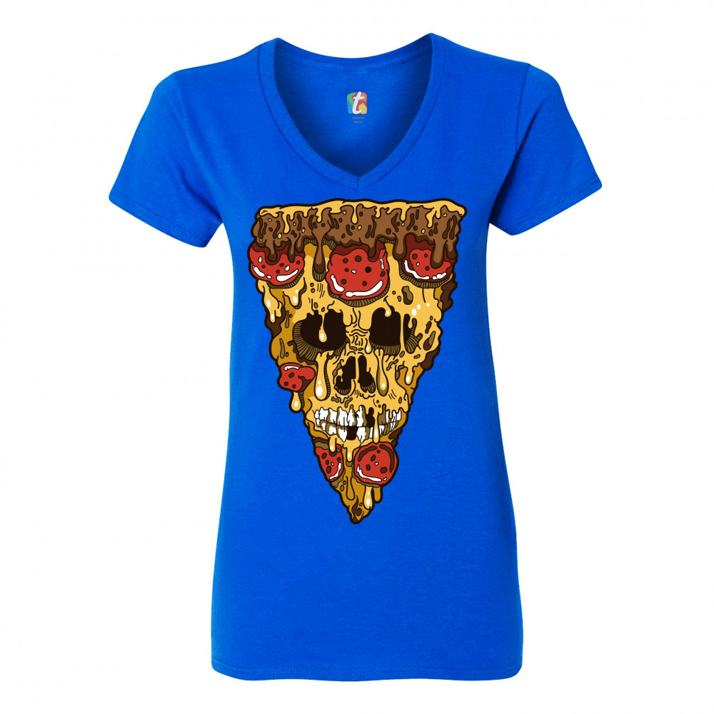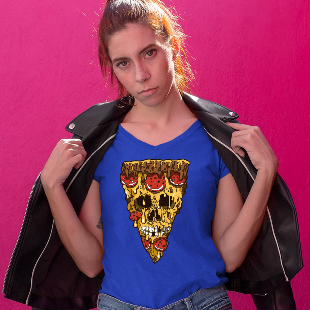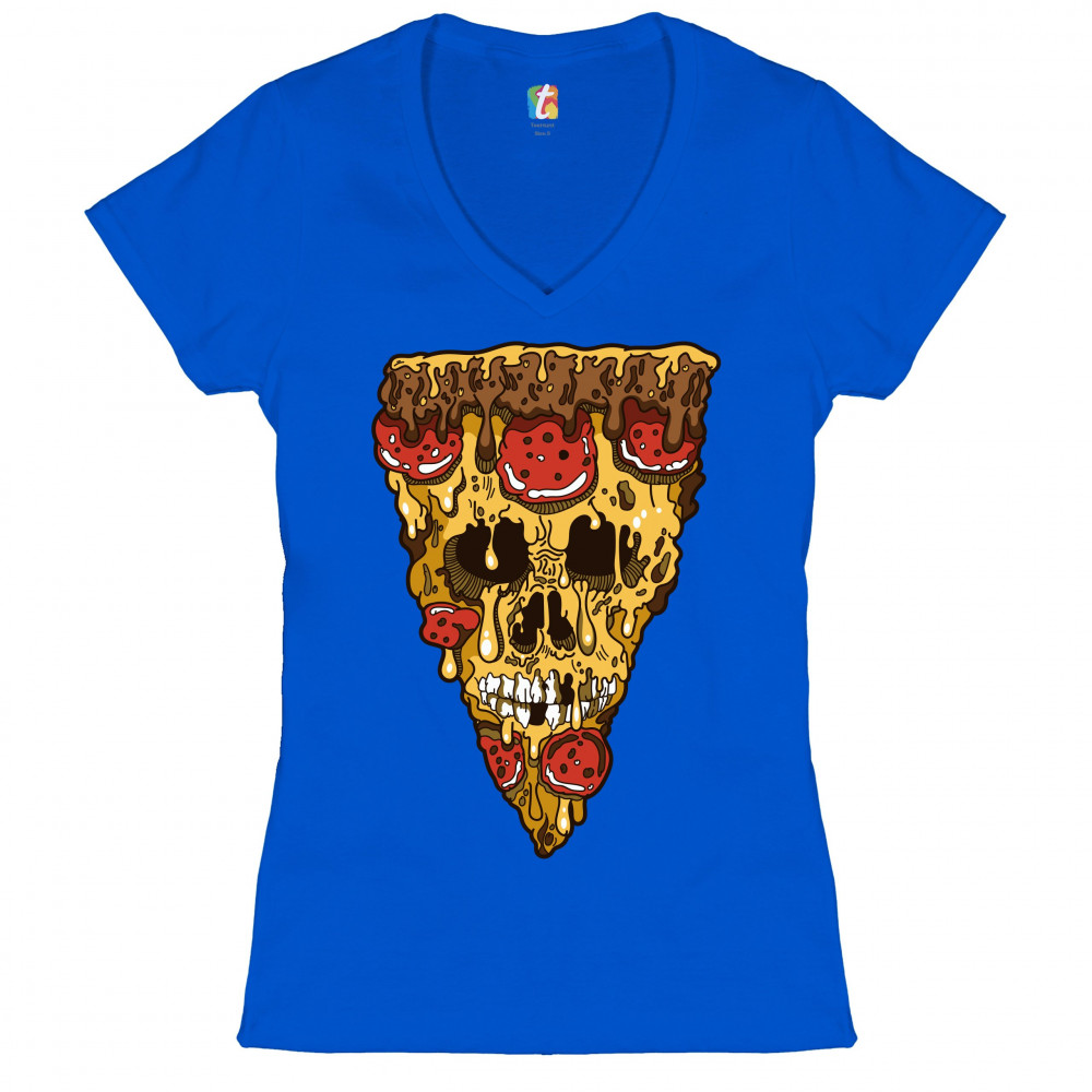 MELTING PIZZA ZOMBIE FACE women's v-neck t-shirt horror halloween undead tee royal blue
