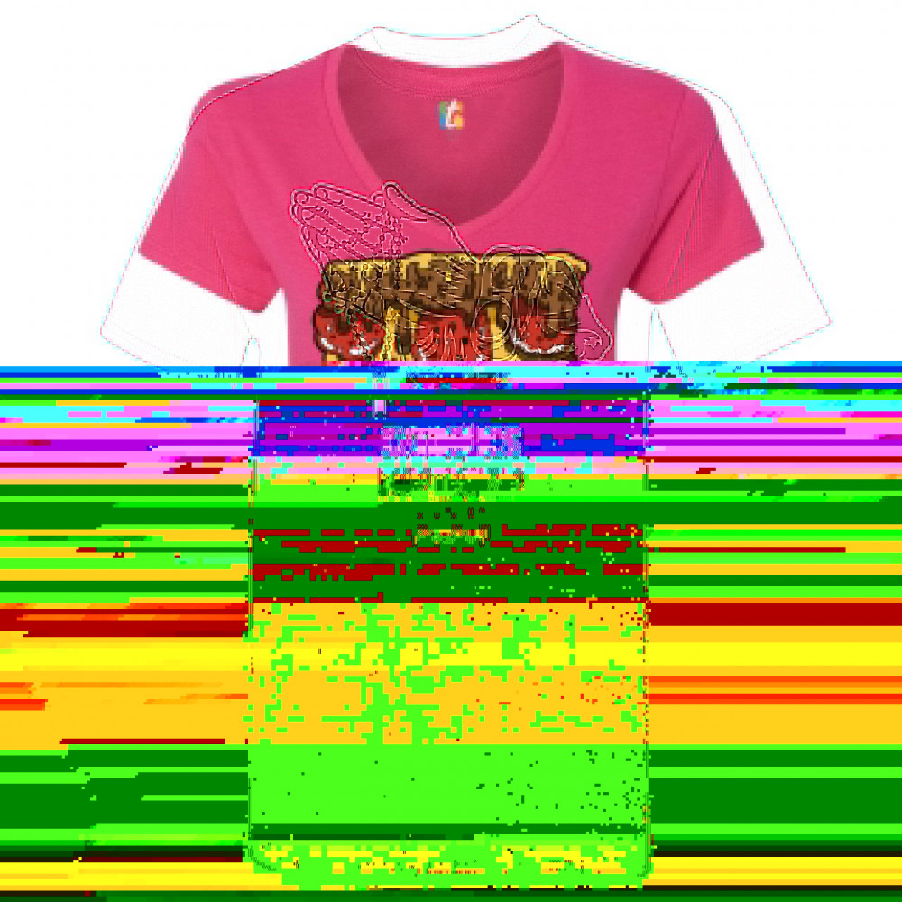 MELTING PIZZA ZOMBIE FACE women's v-neck t-shirt horror halloween undead tee pink