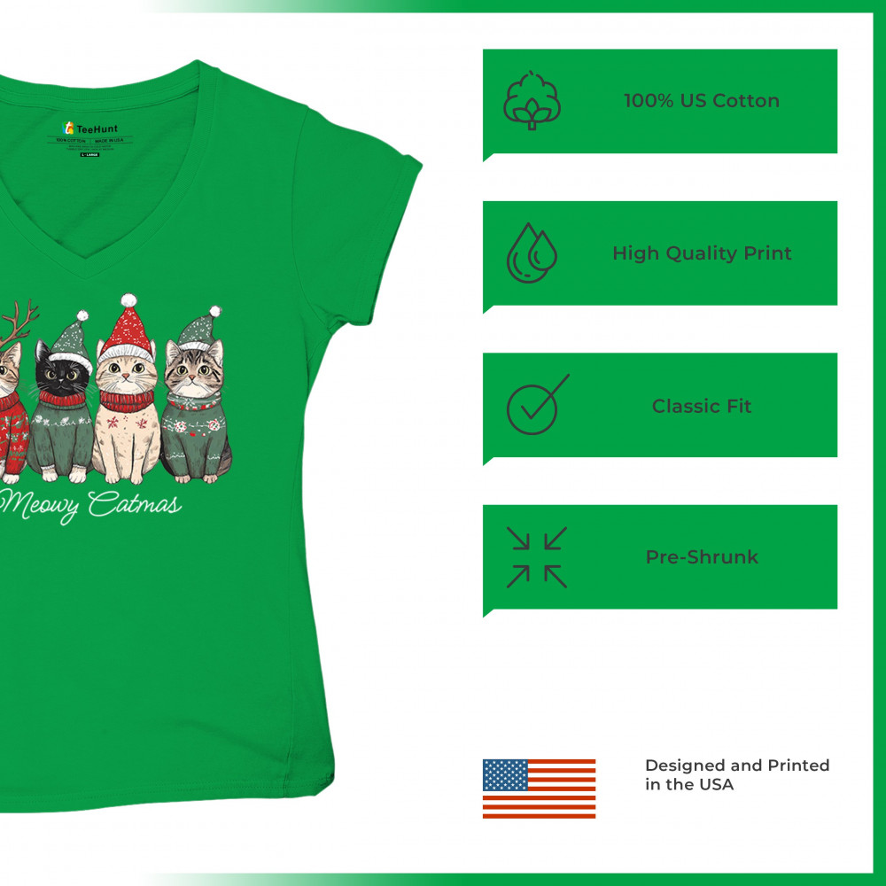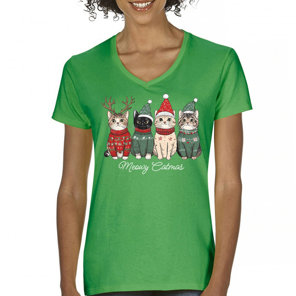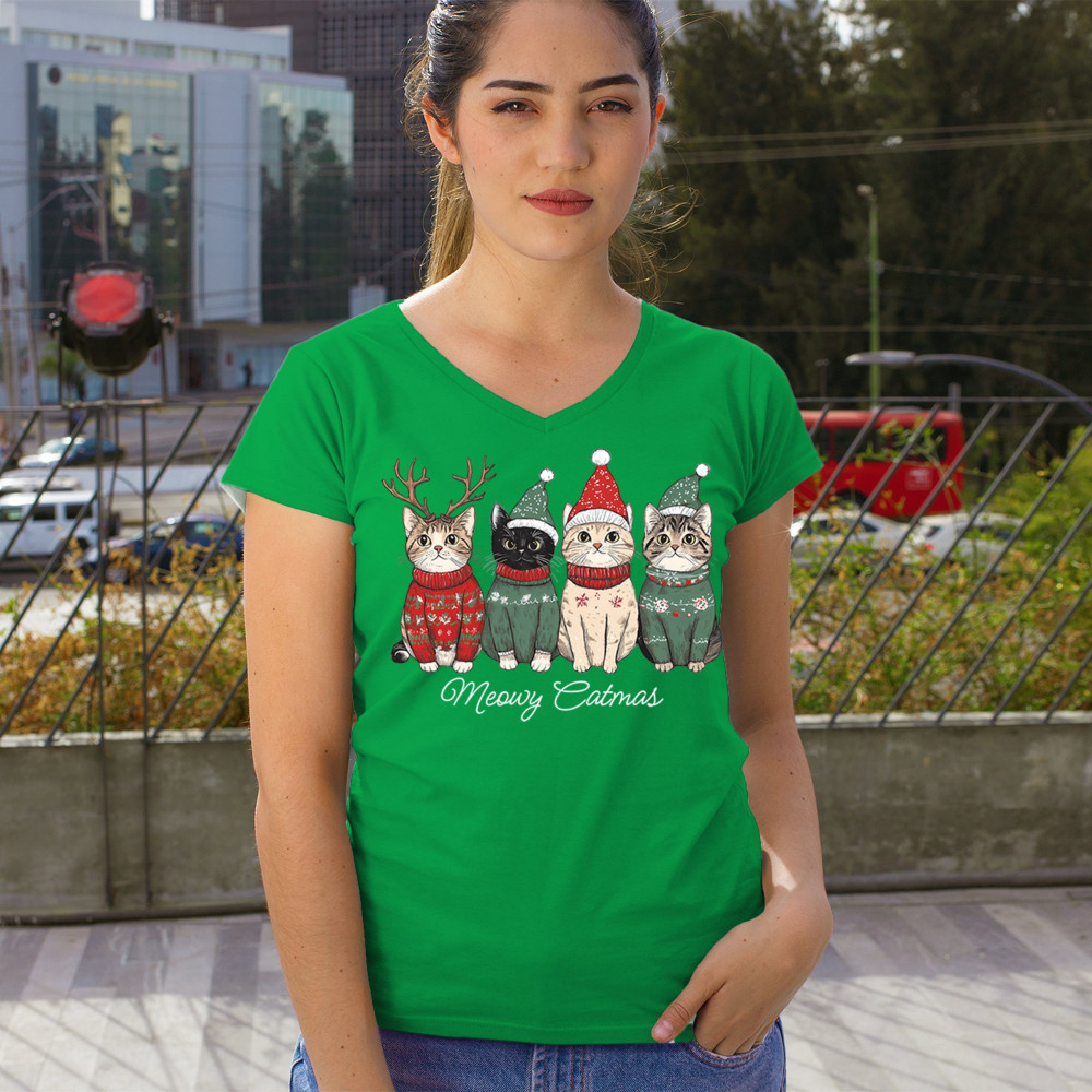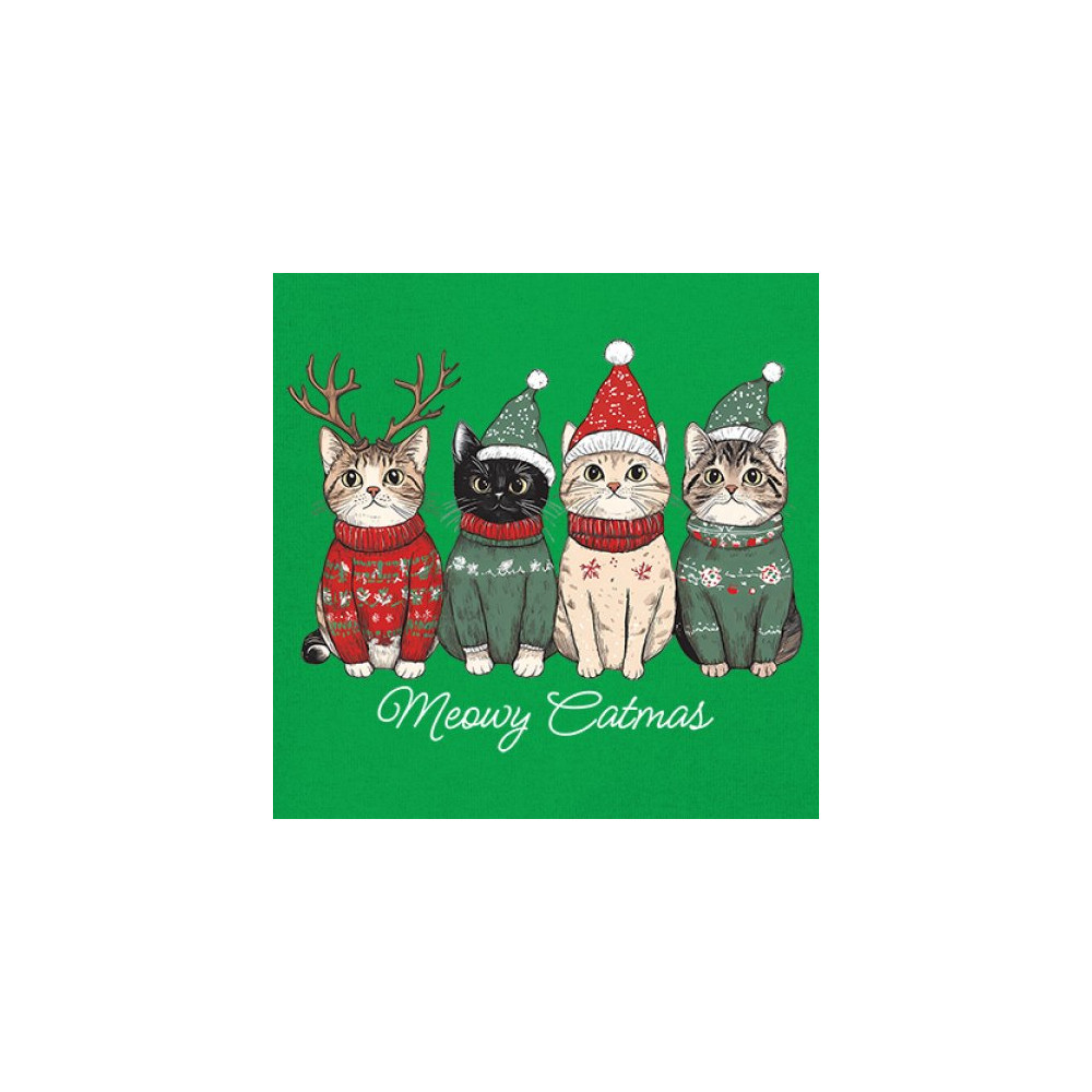 Cute Meowy Catmas design with festive kittens, perfect for cat lovers wanting a cozy holiday graphic and fun Christmas pet theme.