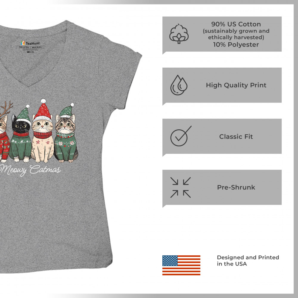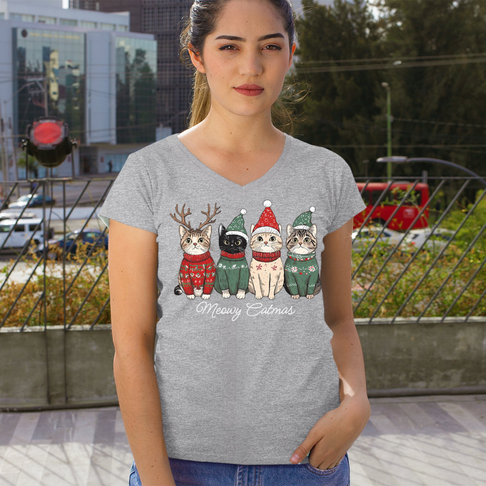Cute Meowy Catmas design with festive kittens, perfect for cat lovers wanting a cozy holiday graphic and fun Christmas pet theme.