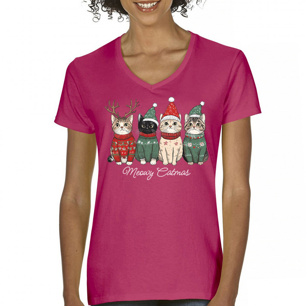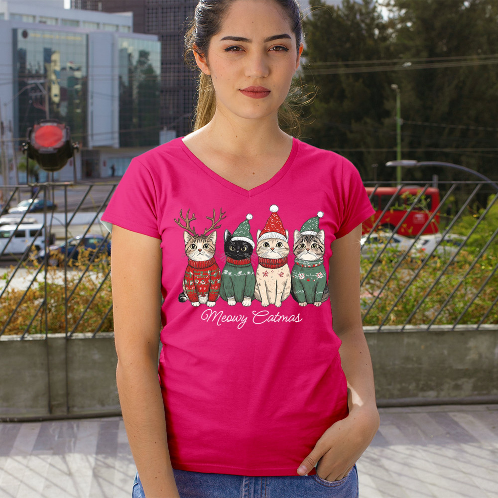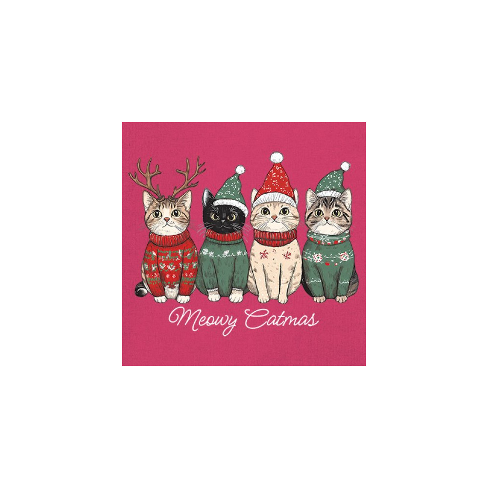 Cute Meowy Catmas design with festive kittens, perfect for cat lovers wanting a cozy holiday graphic and fun Christmas pet theme.