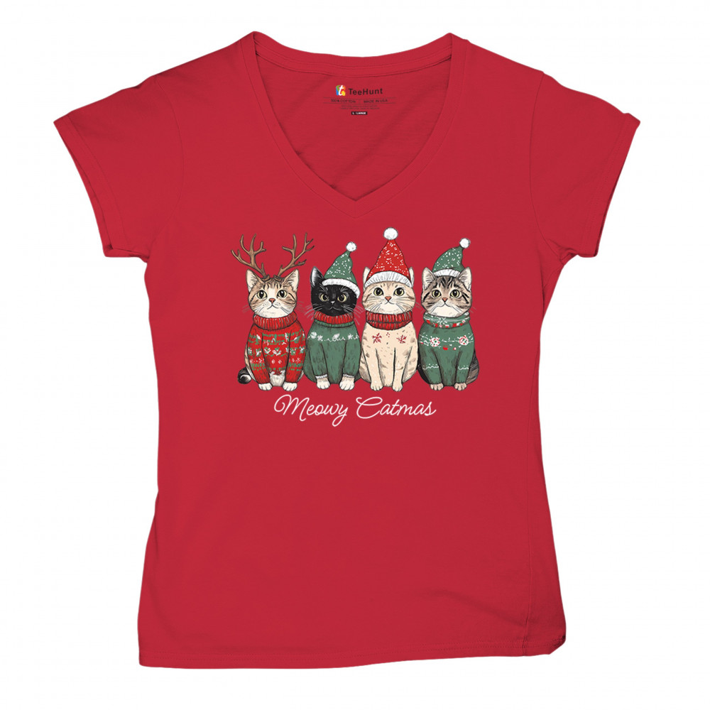 Cute Meowy Catmas design with festive kittens, perfect for cat lovers wanting a cozy holiday graphic and fun Christmas pet theme.