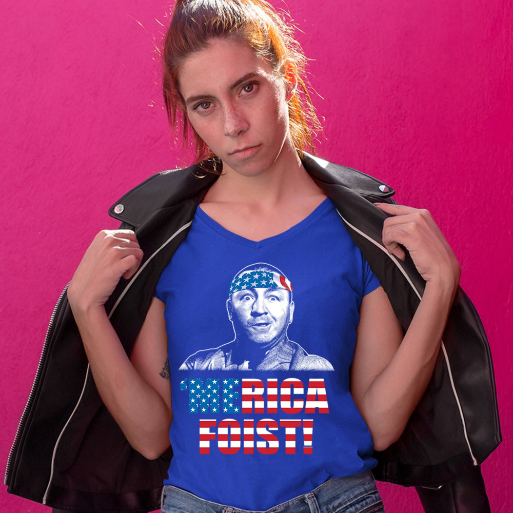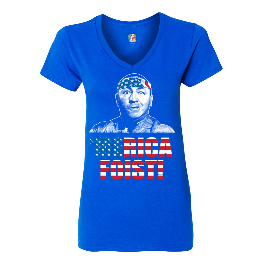 MERICA FOIST women's v-neck t-shirt curly howard the three stooges usa tee royal blue