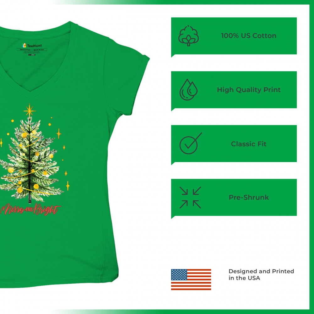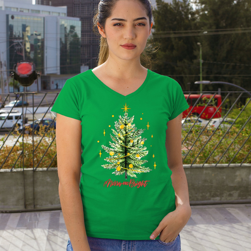 Festive “Merry and Bright†shirt featuring a joyful Christmas tree. Perfect for holiday gatherings, office parties, or Secret Santa gifts.