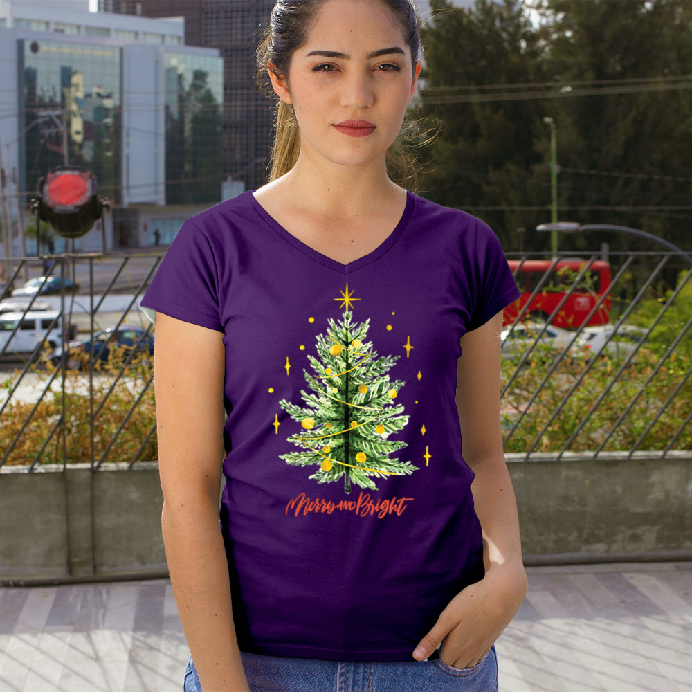 Festive “Merry and Bright†shirt featuring a joyful Christmas tree. Perfect for holiday gatherings, office parties, or Secret Santa gifts.