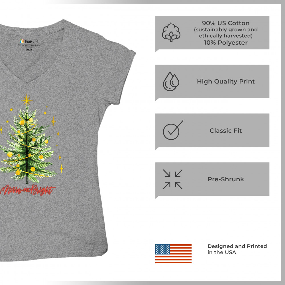 Festive “Merry and Bright†shirt featuring a joyful Christmas tree. Perfect for holiday gatherings, office parties, or Secret Santa gifts.