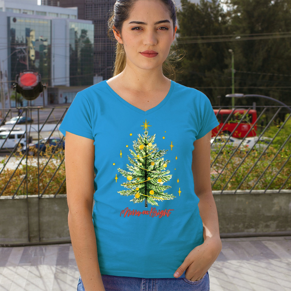 Festive “Merry and Bright†shirt featuring a joyful Christmas tree. Perfect for holiday gatherings, office parties, or Secret Santa gifts.