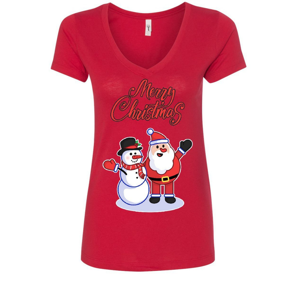 MERRY CHRISTMAS SANTA AND SNOWMAN merry christmas santa snowman hug women's v-neck t-shirt xmas holiday spirit red