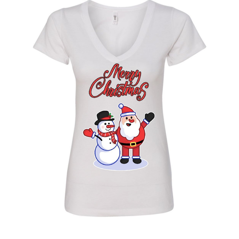 MERRY CHRISTMAS SANTA AND SNOWMAN merry christmas santa snowman hug women's v-neck t-shirt xmas holiday spirit white
