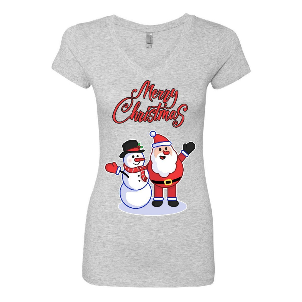 MERRY CHRISTMAS SANTA AND SNOWMAN merry christmas santa snowman hug women's v-neck t-shirt xmas holiday spirit gray
