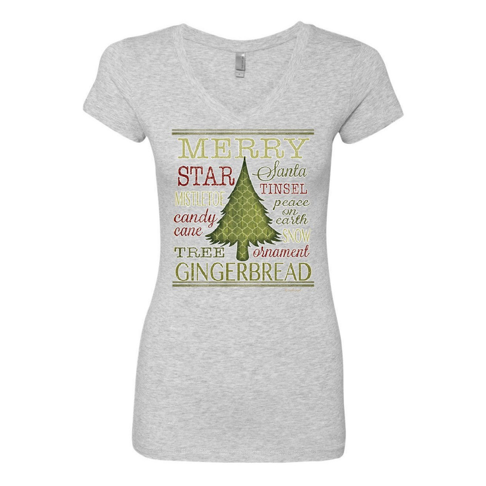 MERRY CHRISTMAS xmas tree women's v-neck t-shirt holiday spirit joy santa snow gray