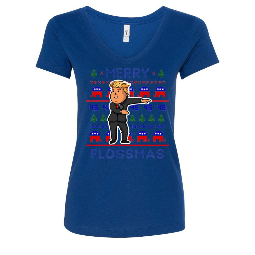 MERRY FLOSSMASS merry flossmas women's v-neck t-shirt christmas xmas ugly sweater trump floss royal blue