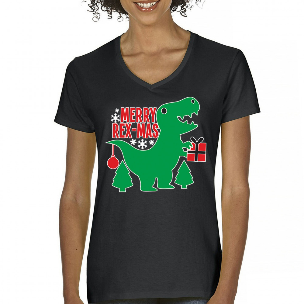 Merry Rex-Mas dinosaur Christmas design with a cute T-Rex, gift, and festive holiday details. Perfect for fun family celebrations and cheerful winter style.