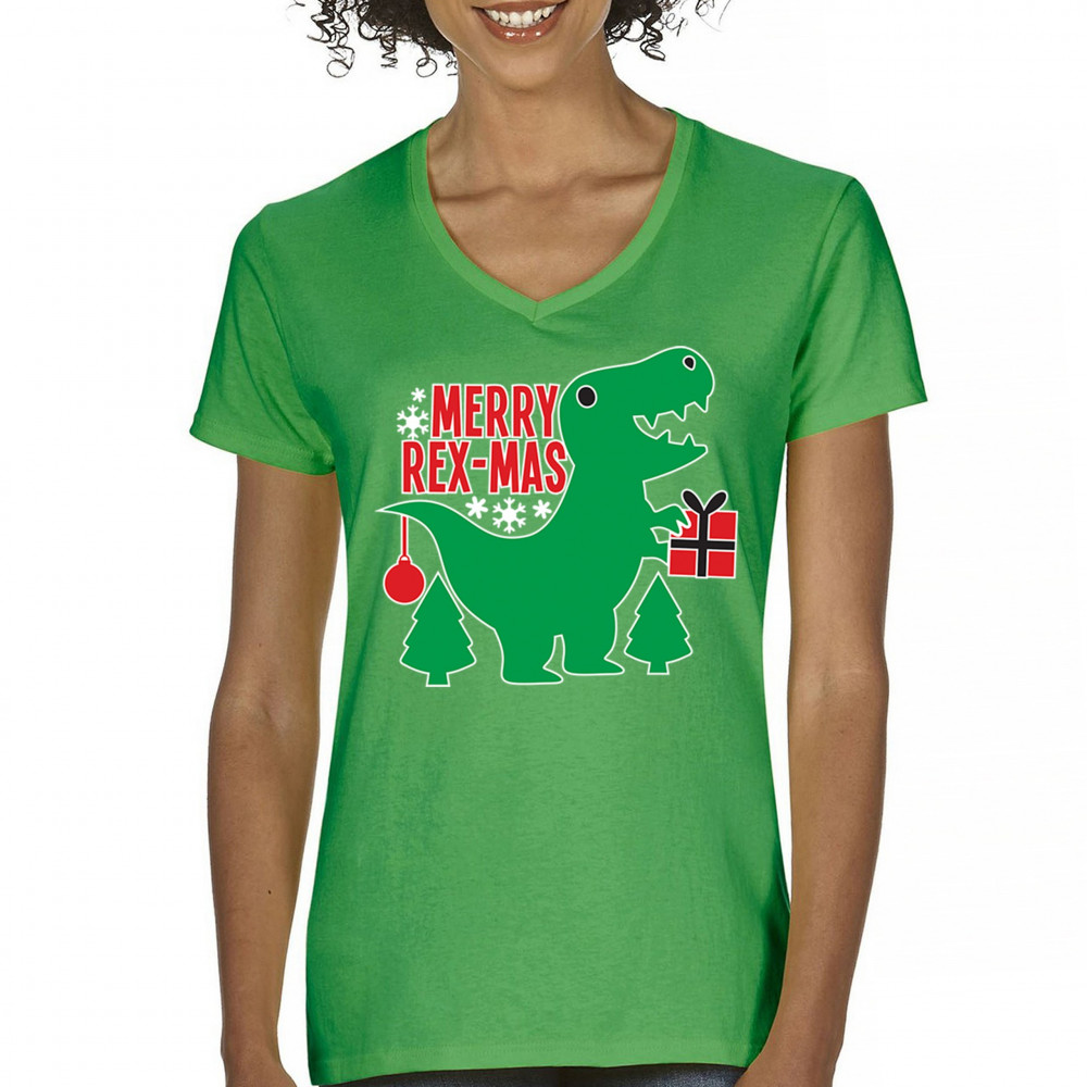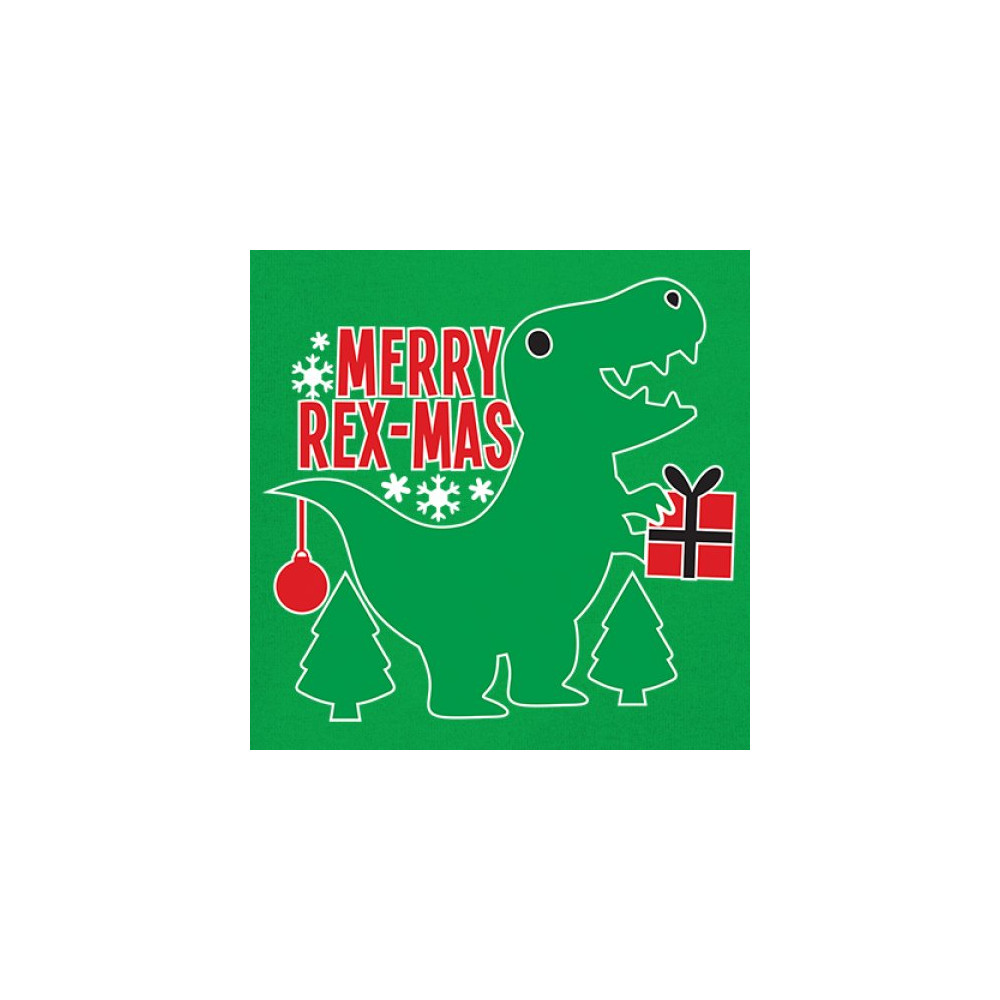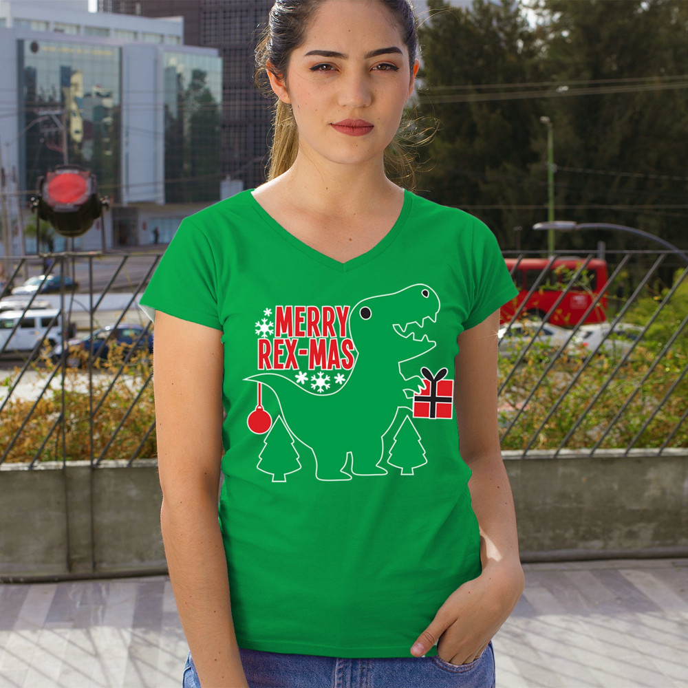 Merry Rex-Mas dinosaur Christmas design with a cute T-Rex, gift, and festive holiday details. Perfect for fun family celebrations and cheerful winter style.