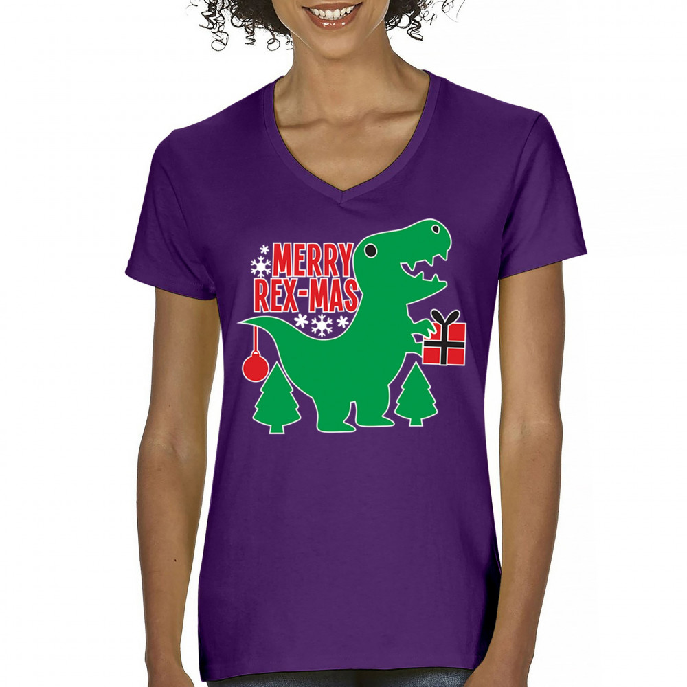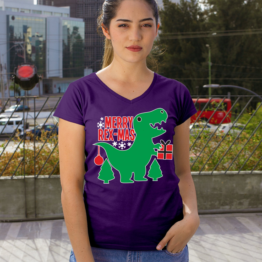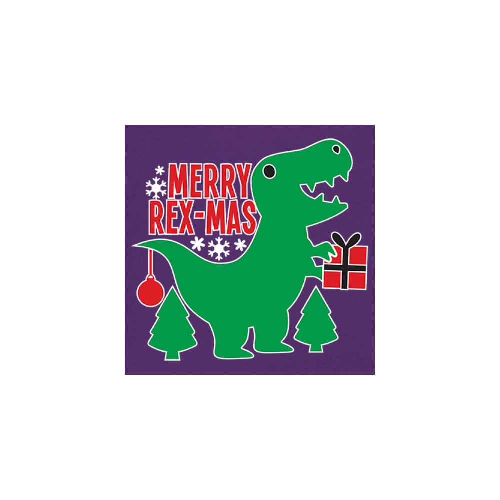 Merry Rex-Mas dinosaur Christmas design with a cute T-Rex, gift, and festive holiday details. Perfect for fun family celebrations and cheerful winter style.